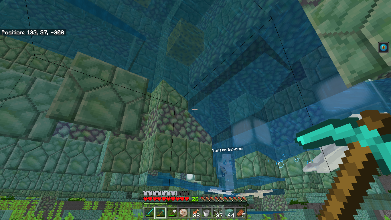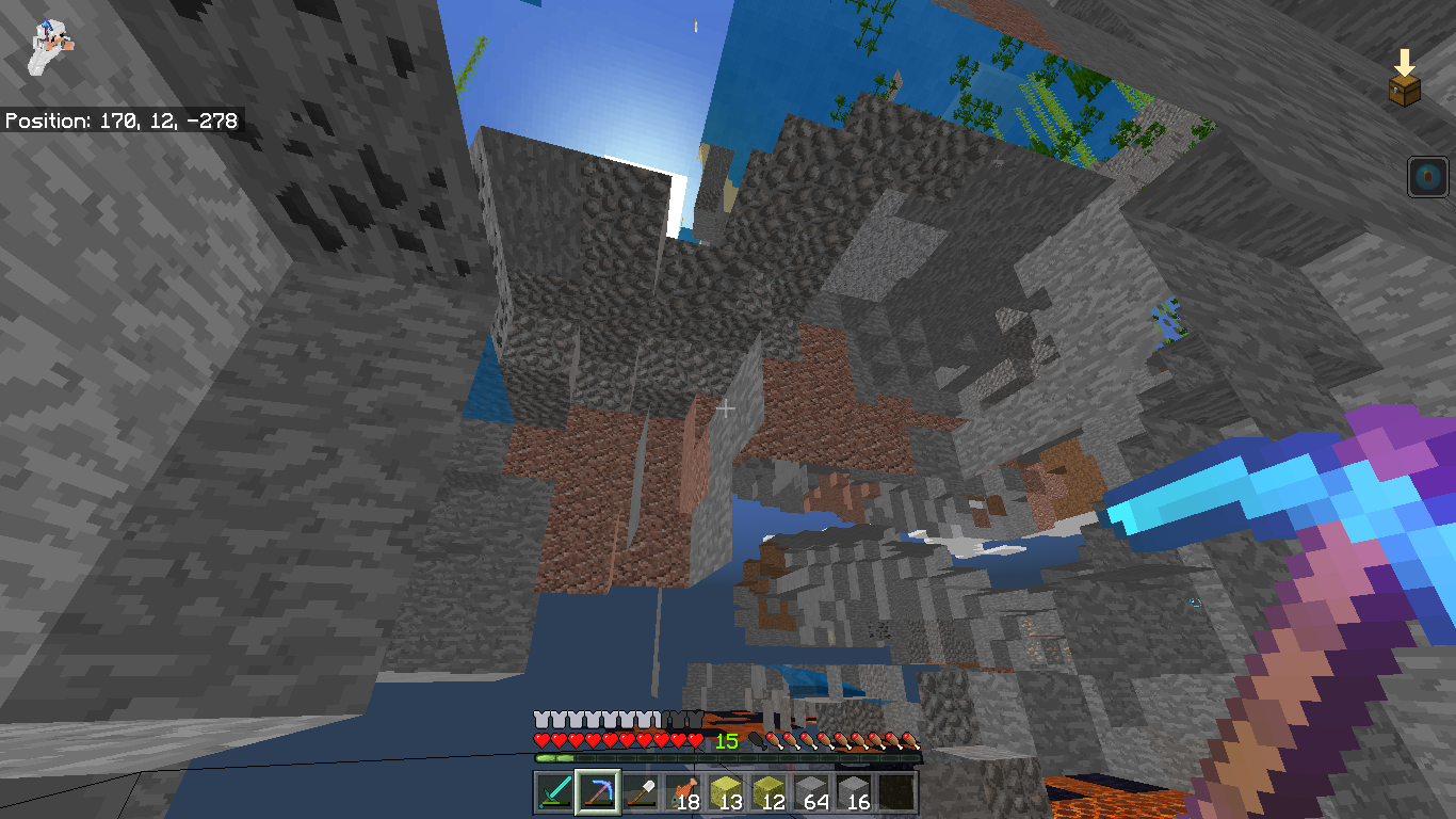 Swimming upwards (swimming animation) while head is above a block gives xray.