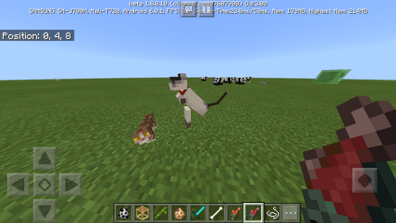 So, I did this multiple times in creative mode and I've got the exact same result. When I tame a cat it floats and it's body is in a weird position. I can push them (but one time I just went through it like it wasn't there) and they finally stop levitating in that weird position only when I make them stand up.