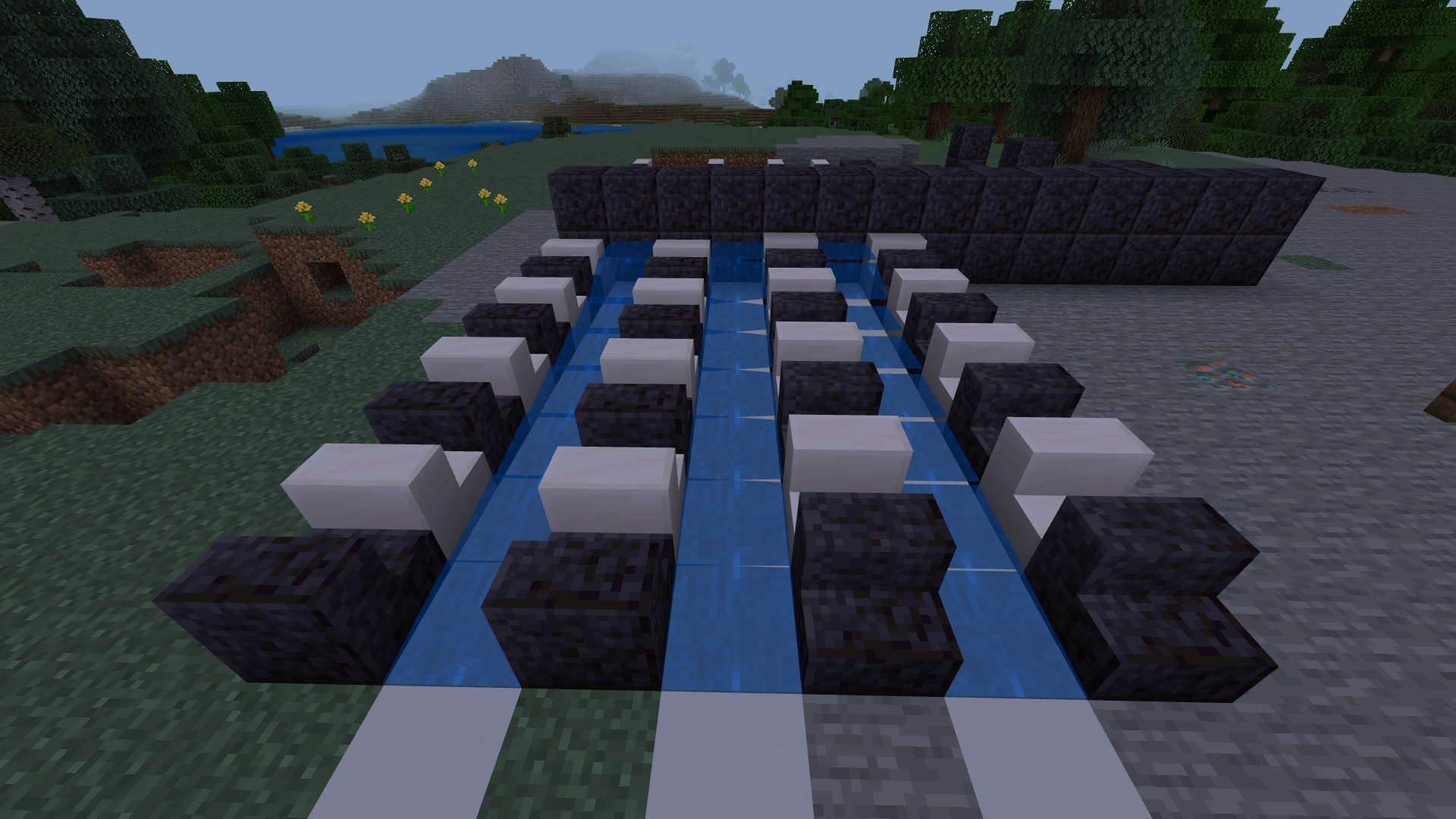 Placing non-full blocks (like slabs, stairs, fences and etc) next to flowing water/lava causes some weird visual glitches.