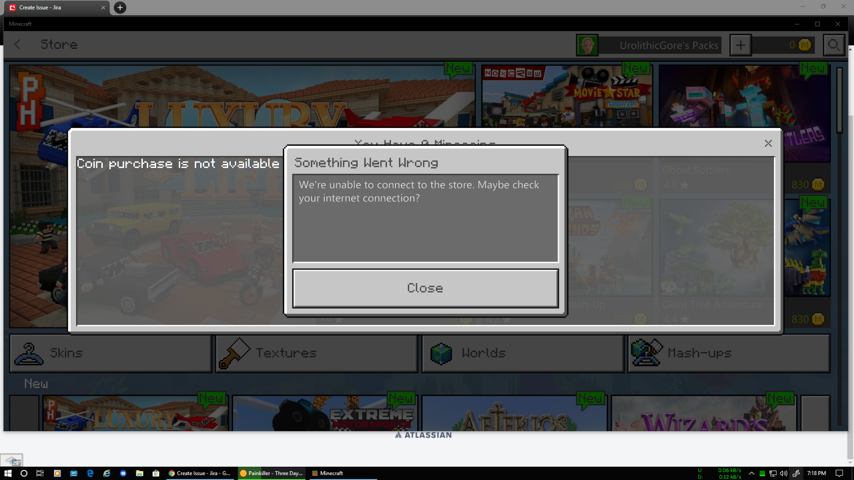 Cannot buy minecraft coins, I keep getting cannot connect to store.