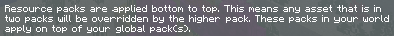 I was just looking in my Minecraft World Settings and I went to the explanation part of Resource & Behavior sections. The text that explains them is wrong. It should say that they're applied "Top to Bottom" instead of "Bottom to Top"