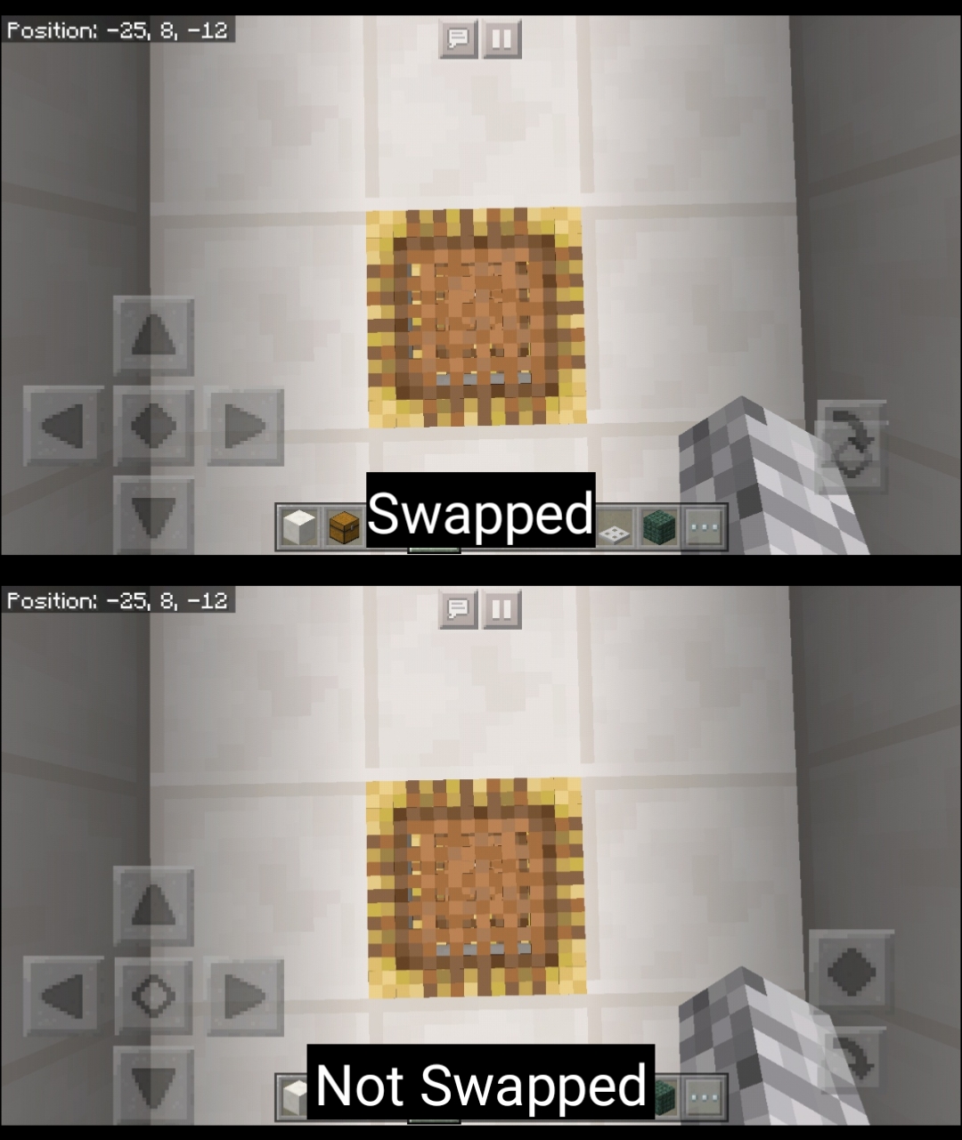 The "Go down on scaffolding" button overshadowed by the sneak button when swap jump and sneak is activated. I cant touch the Go down button, but when swap jump and sneak is deactivated i can.
