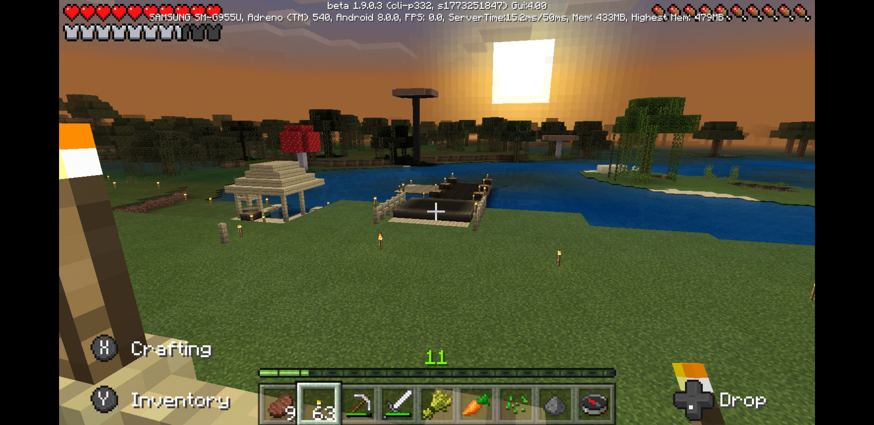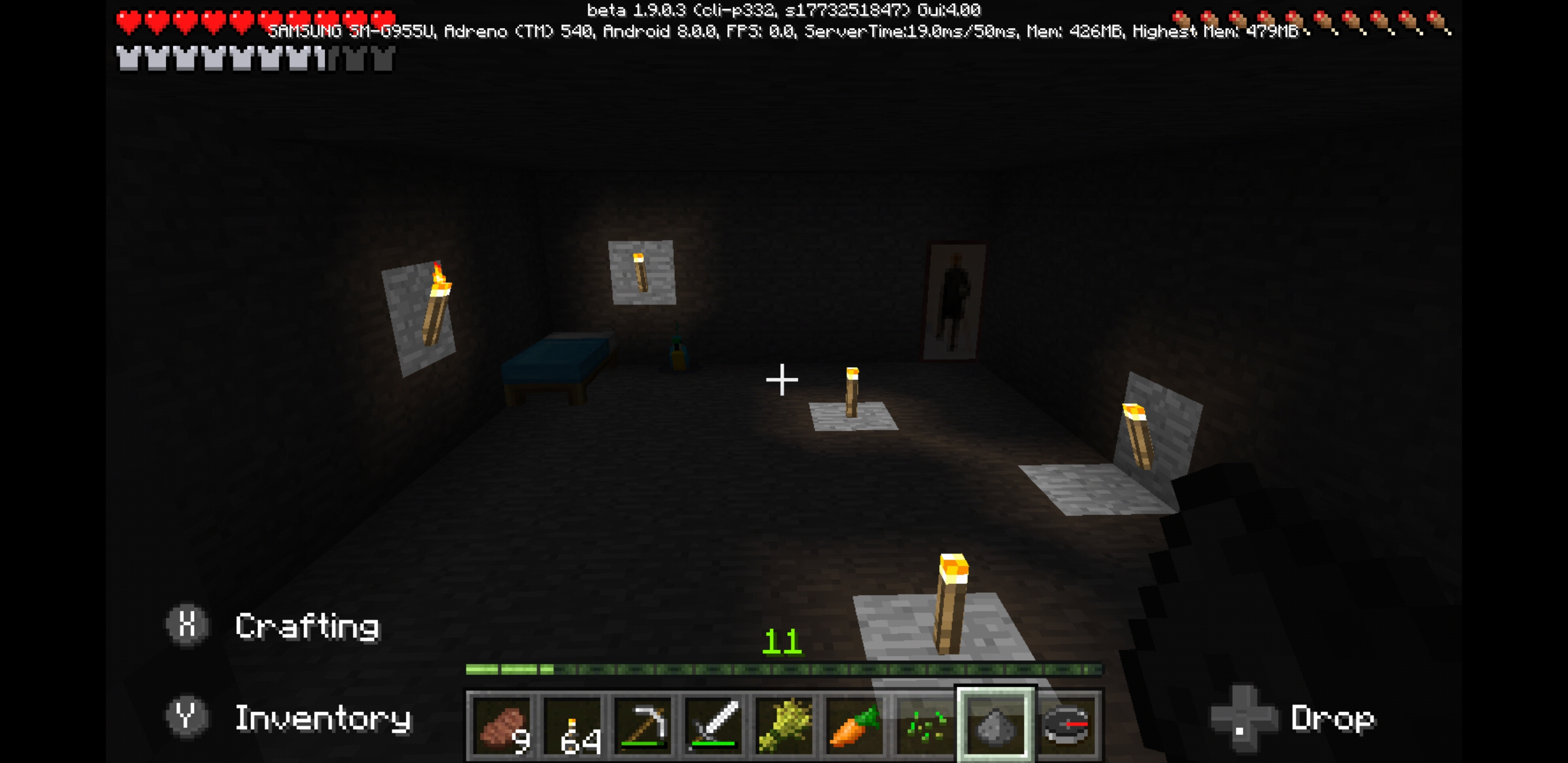 I am running on a Samsung Galaxy S8 +. There are issues with torch lighting, as well as the normal lighting around trees. The torch will emit light for the block it's in, but the other blocks around will be completely dark. The trees will look really dark underneath, until you break a leaf block, and the lighting goes back to normal. Animals feet did not move when walking, but this was fixed with restarting the game.