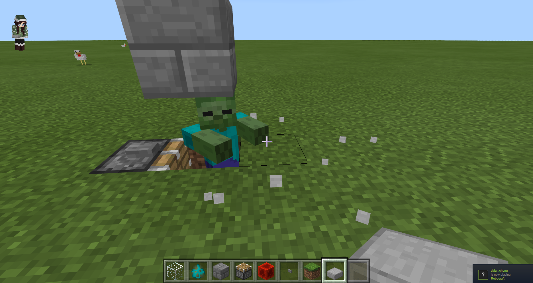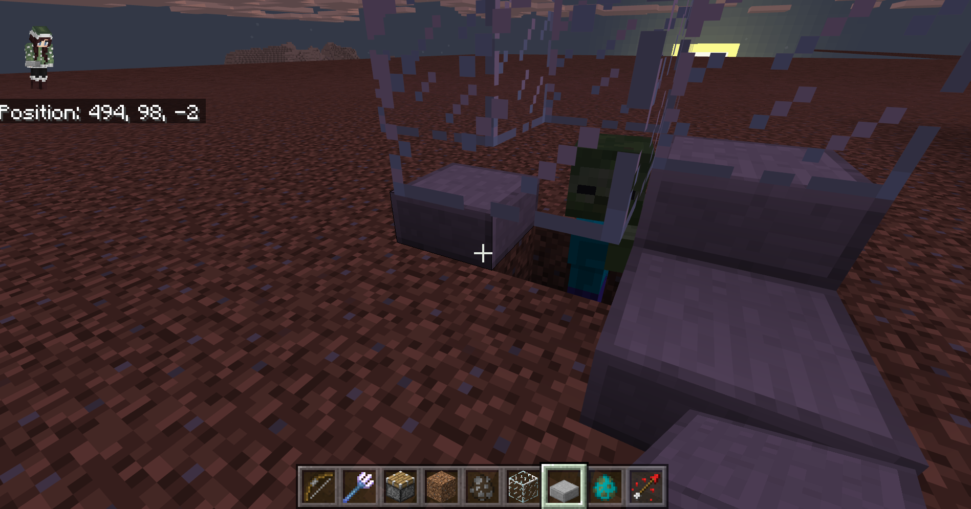 Spawn a creeper, zombie, drowned, zombie pigman, witch, villager, or zombie villager in the hole.