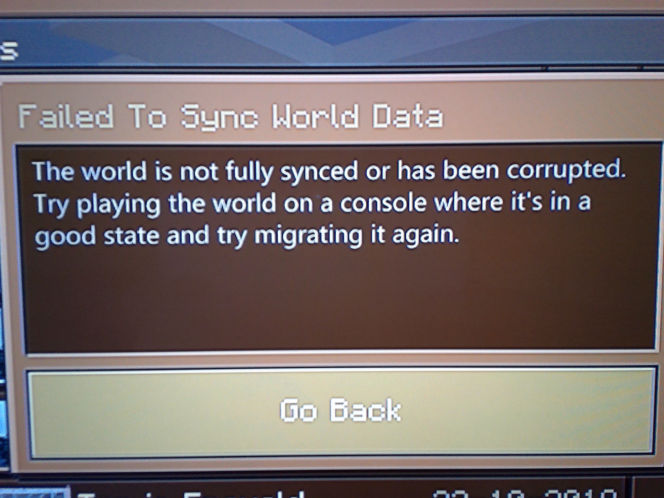 why can i not sync my world on 557.8 mb from 25-10-2018