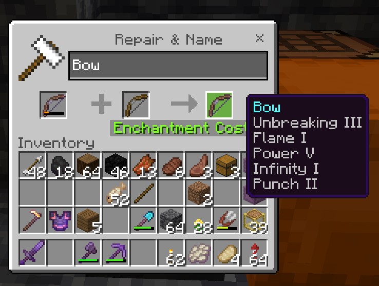 What I did: Take one of my 24 'new' anvils, place one in inventory. Place it down to use. Fix a bow at 9 cost. Break anvil back into inventory. Add anvil back to pile - creating a new 24 stack of anvils.
