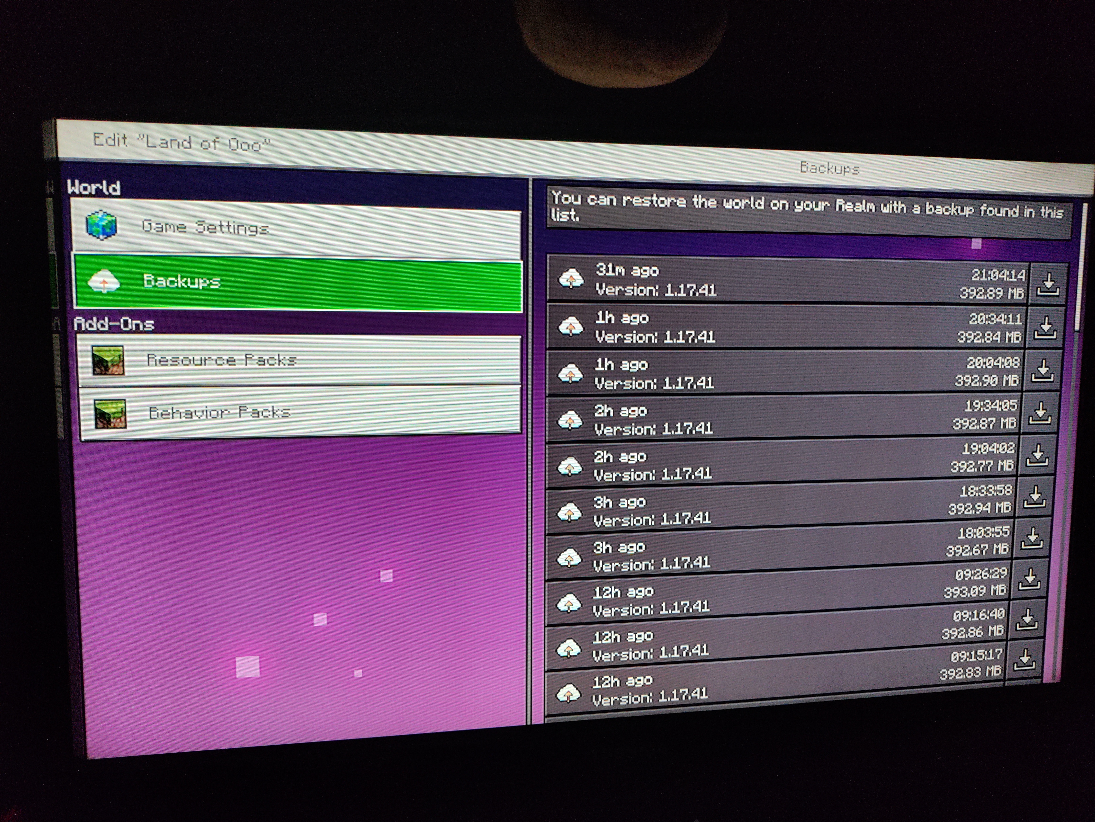 Once I got the successful download notification, I launched the world. The only things missing were my thrown tridents in the farms. (No worries, I’ll replace them later). Now I know my world is safe, I did, yet another, FULL POWER DOWN. Once the Xbox was up and running, I launched, Minecraft and reentered the world again. Everything looked fine.