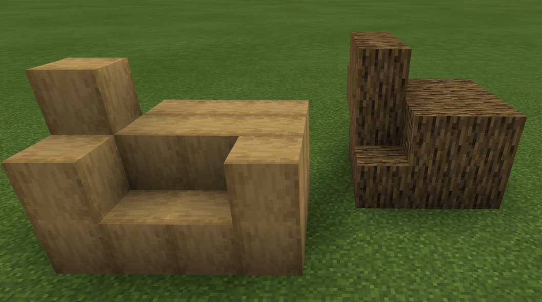 Wood and stripped wood blocks (previously known as bark blocks) can't be rotated.