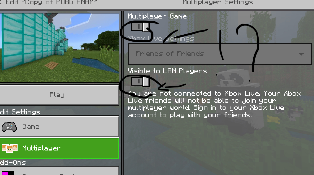 Since the update 1.9 came I can’t play with my brother neither can he because whenever I go to a world the “multiplayer game” button is turned off and I can’t turn it on too cuz I’m in the world so I get out and check it again and it’s turned on but still when I’m in the world it’s off idk why but pls fix this and btw I use an uncharged WiFi (a WiFi that is not connected to the internet)