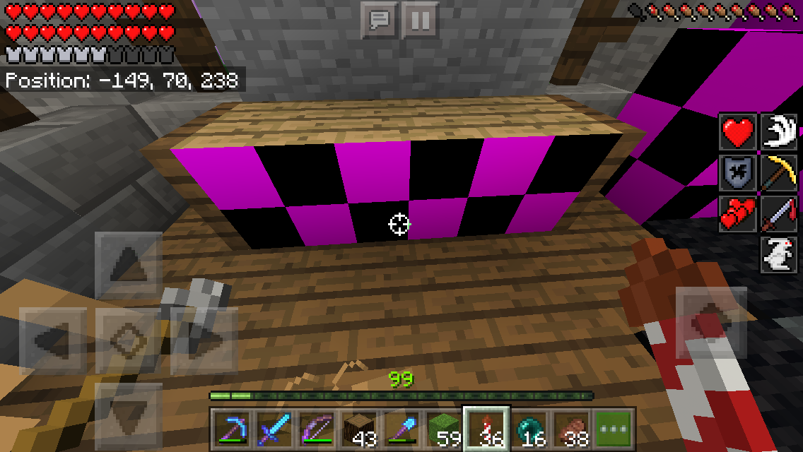 The first five images are before i started writing this report the rest is from when I decided to check whether there were more blocks and items "untextured" and so I came back to my world to discover most textures were switched with other ones.