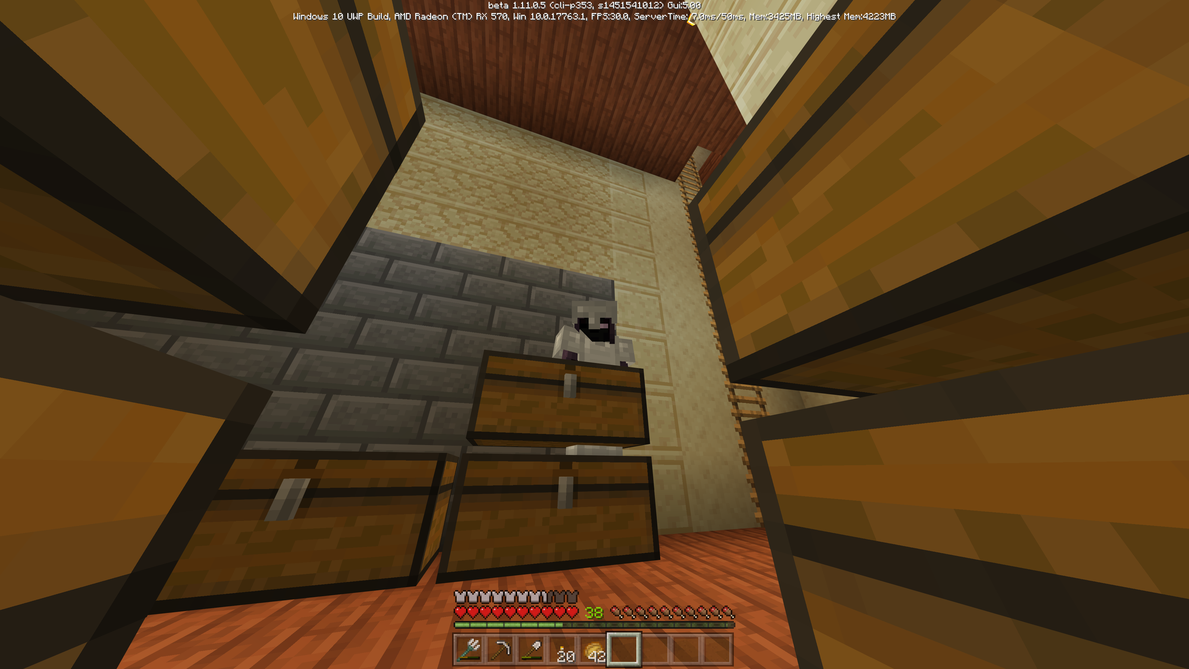 If the game is saved with the player standing on top of a chest, reopening that world spawns the player in the chest (i.e. both player and chest are standing on the same block in the same space).