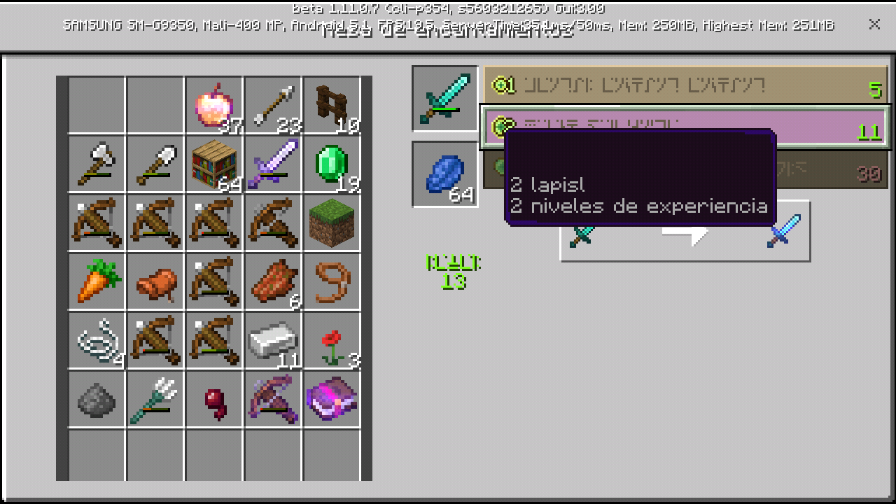 The enchantment table does not show the spell to be enchanted, this bug chases me from version 1.9.0.15 of Minecraft and persisted in the 1.10.0.7 and in the beta 1.11.0.7 of MCPE.