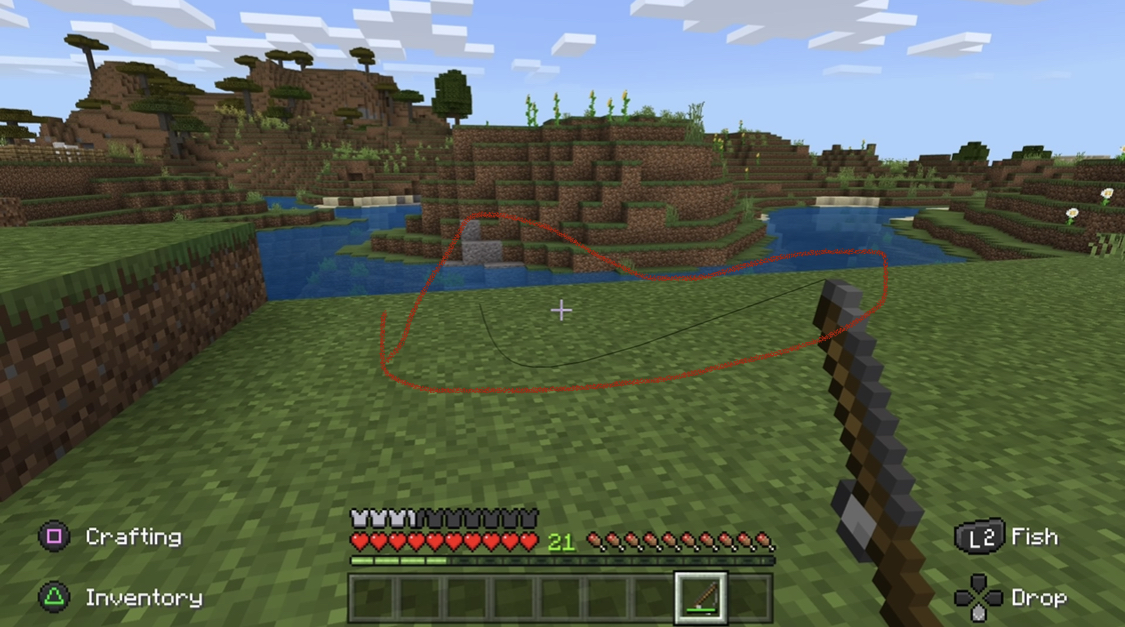I noticed a bug while play-testing that the fishing rod string can still be visible behind blocks. [Previous Reporter by Original: Euwill Eusebio [ Emeraled345 ] ]