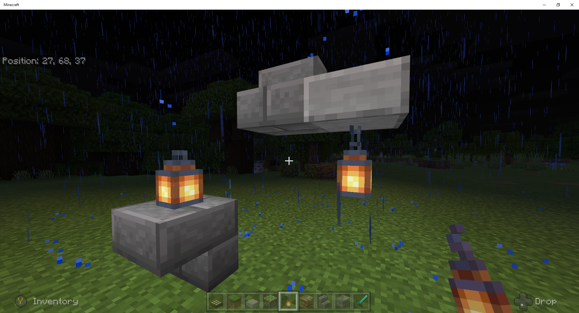 Lanterns can not be placed under a stairs block.