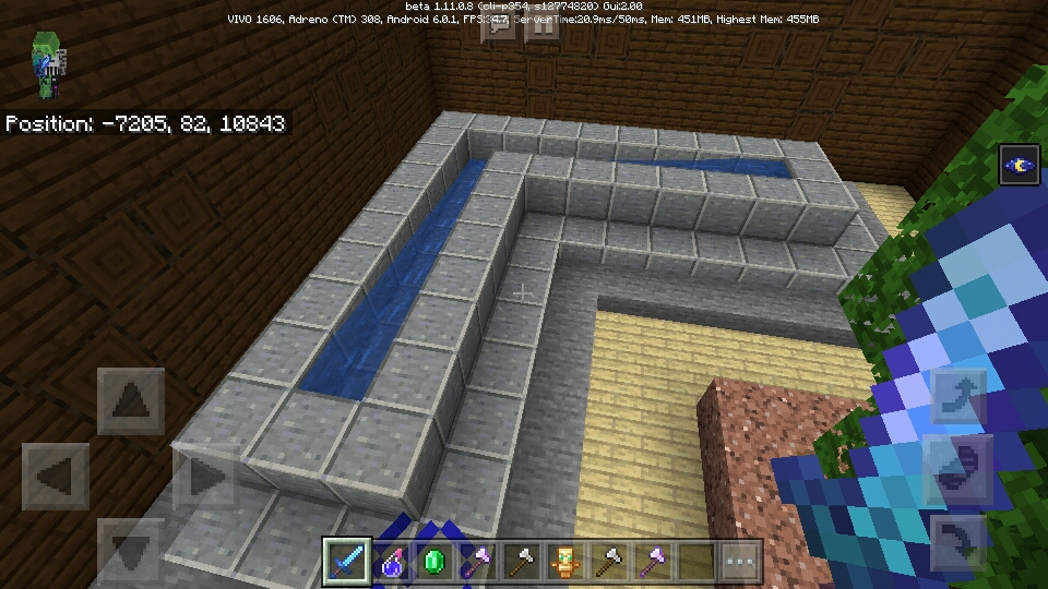 Rooms like the 'arena' room and the other room with a tree and flowing water generates with stone slabs instead of smooth stone slabs. The 'arena' room does not generate double slabs either.