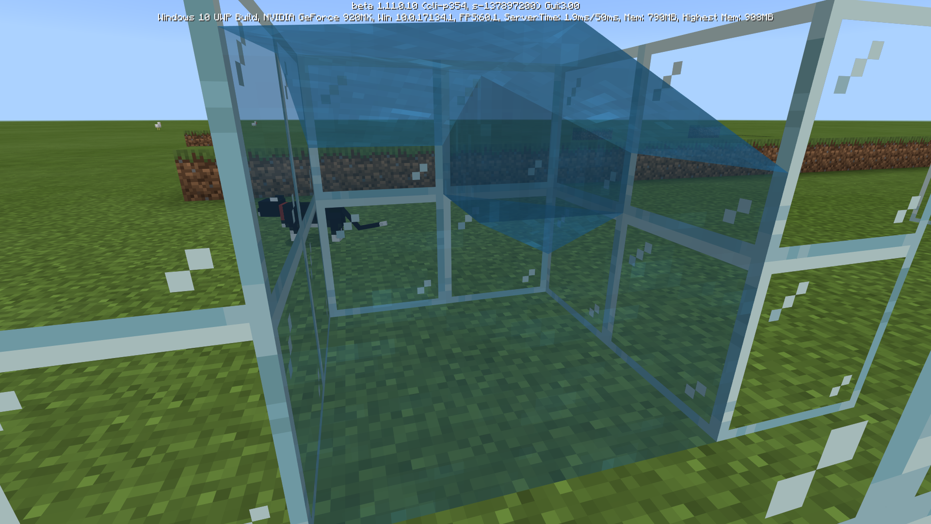 Make a 4x4 glass cube with a 2x2 hollow space inside;