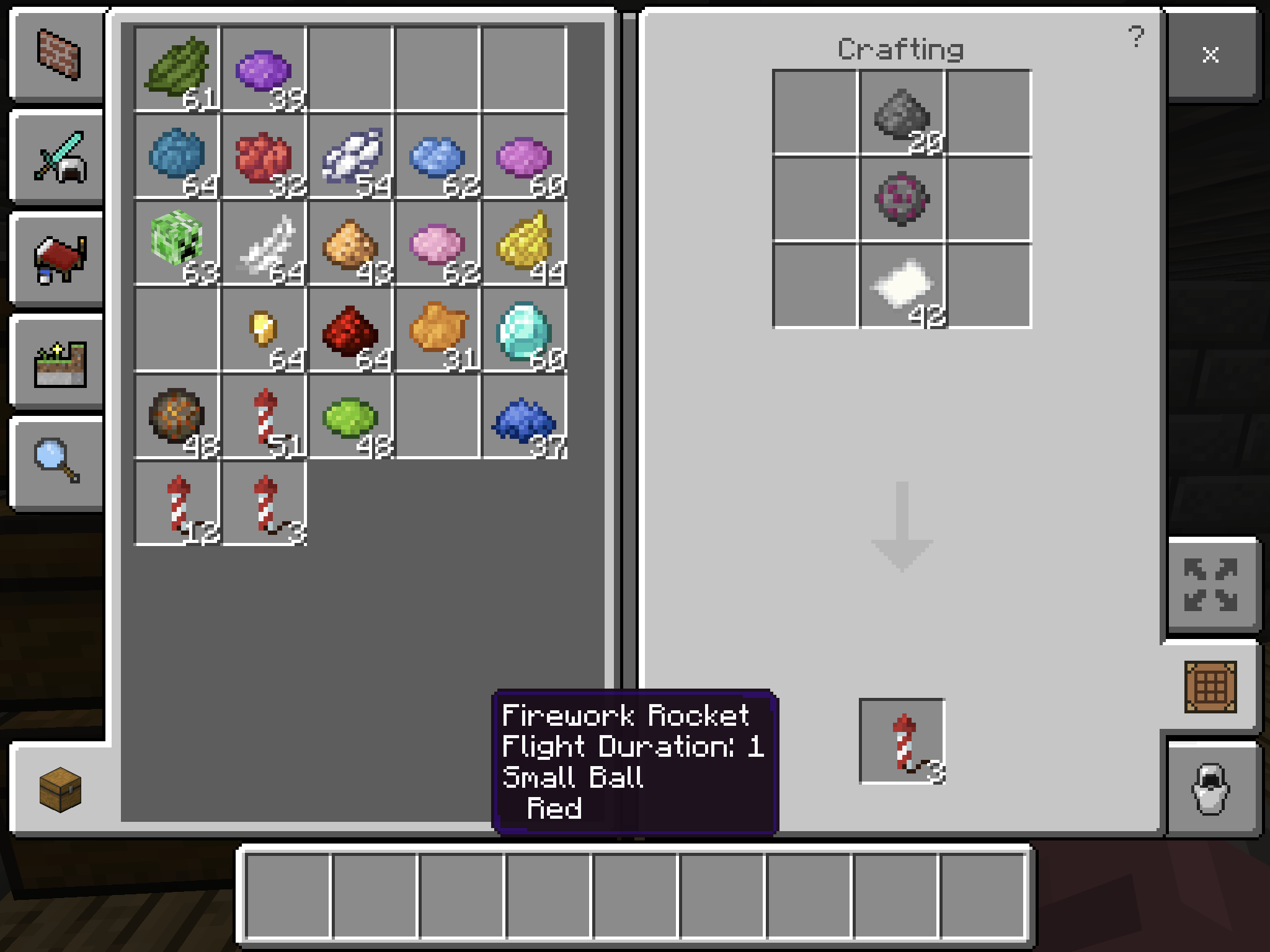 so its minecraft pe I’m playing on my iPad Pro and I can’t craft fancy custom fireworks. I put everything in to make a firework with 6 colours, Fire charge and glowstone but it only came up as red and only the glowstone stuck. Red was the first colour put in but there should’ve been a whole rainbow. I started trying with less colours but still only one colour sticks and one special. I’ve had no problems with crafting advanced fireworks in previous updates. This must have snuck in. Don’t know if it’s important but it’s a world in creative