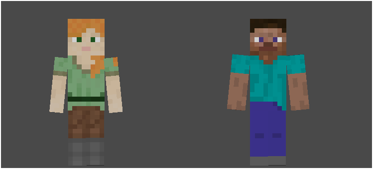 The left arm and leg of the default and custom skins are backwards.
