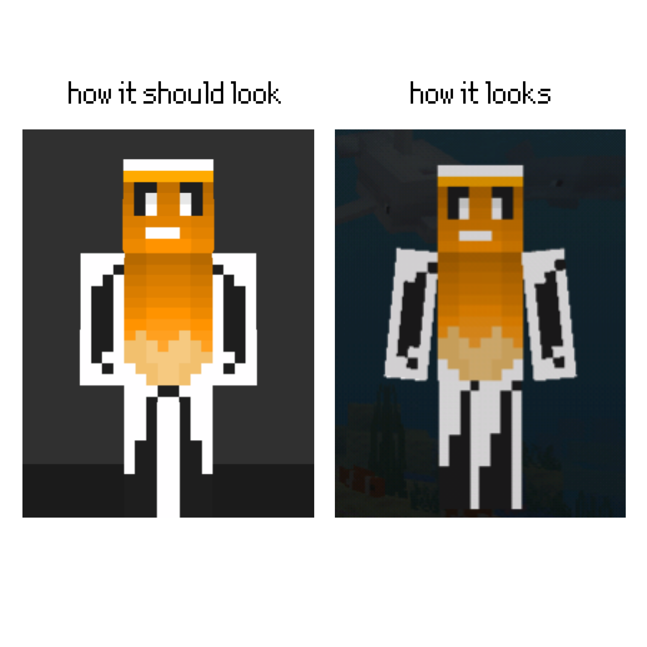 The skins are something that allows us to customize our Minecraft character, but when I updated the game version the left arm and the left leg were badly oriented. I hope it gets fixed soon.