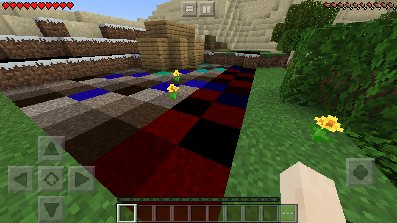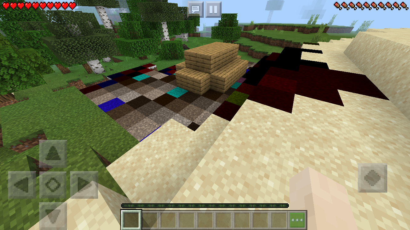 I used the “Vast Desert Oasis” seed that is provided and I was in a desert cave when my game glitched. I was bridging across lava, placing down cobblestone when the cobblestone I tried to place down didn’t show up and I fell in. I was at near full health and died immediately, but I clicked respawn anyway and when I spawned by my bed, the grass was different colors. It still had the same texture, but each block was a random color that I don’t think there are even dyes for, like reddish magenta or neon yellow-green. The grass was in odd colors in a square around my small house. When I destroyed and replaced one of the dirt blocks within the square, it looked normal again.