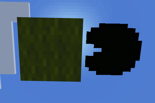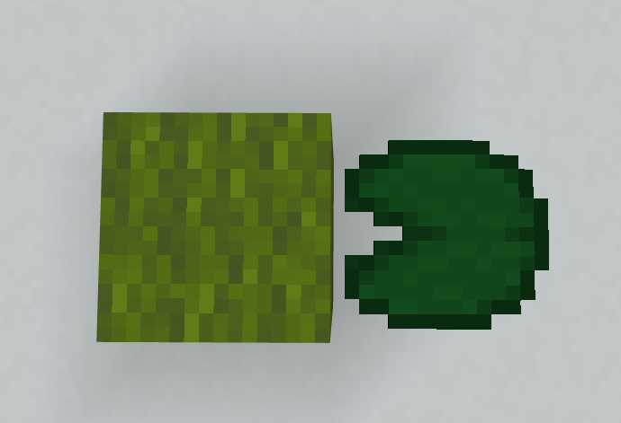 Notice the green wool is still clearly green, but the lily pad is pitch black. (second screenshot taken from above)