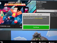 When trying to download a world that I've purchased I'm now getting the error "Not Enough Space - 296MB - You do not have enough space available on your device to download the Steven Universe"