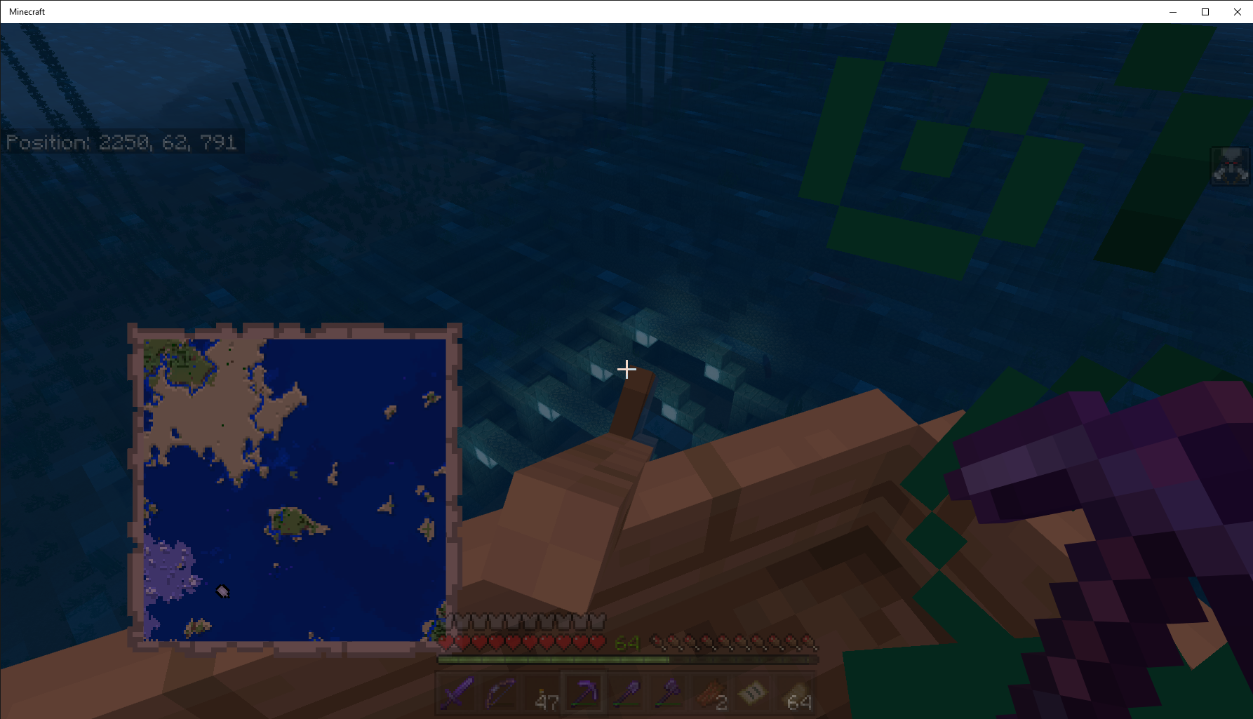 Treasure Hunter Achievement is not unlocking in Windows 10 PC Bedrock v1.17.0.58 Beta. I purchased an Ocean Explorer map from village Cartographer; went to Ocean Monument with map in my Hot Bar, right hand, see above screenshots.