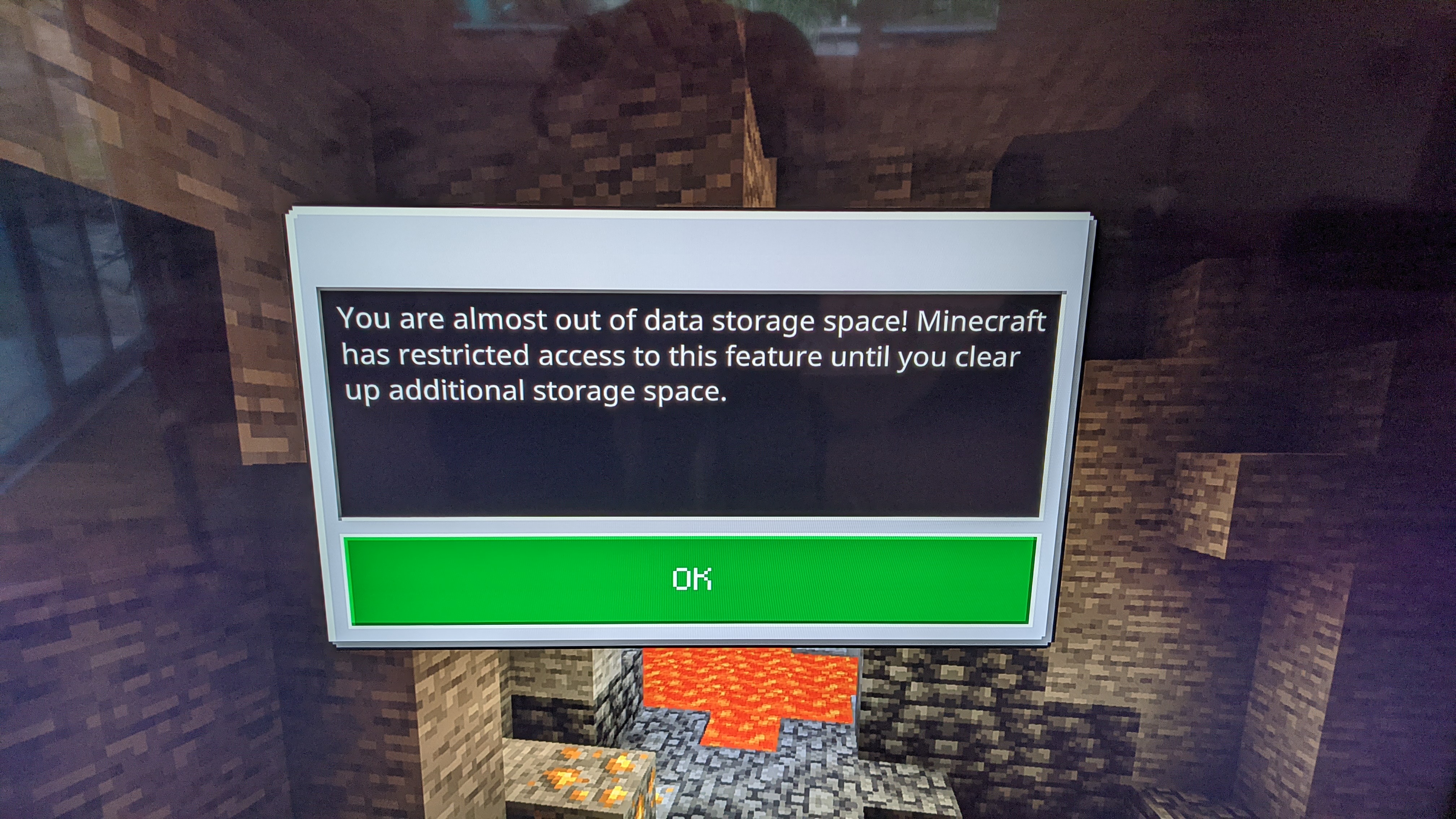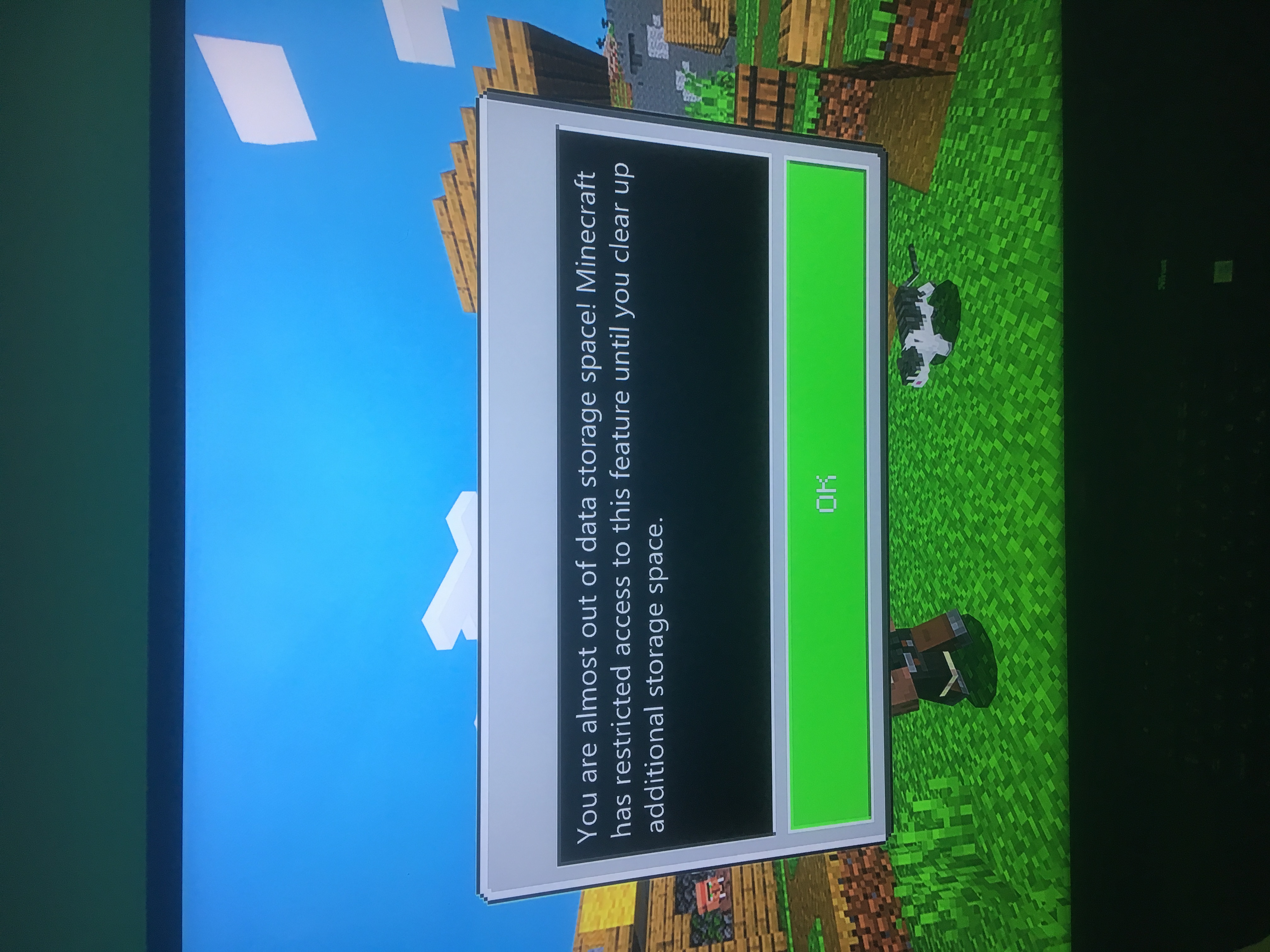 The game is updated today ( 2019.05.18) cca. 130MB, but i still cant play. When im trying to start a new game it says: im out of data storage: "You are out of data storage space! Minecraft has restricted access to this feature until you clear up additional storage space." This is weird because i have 352.2 GB free.