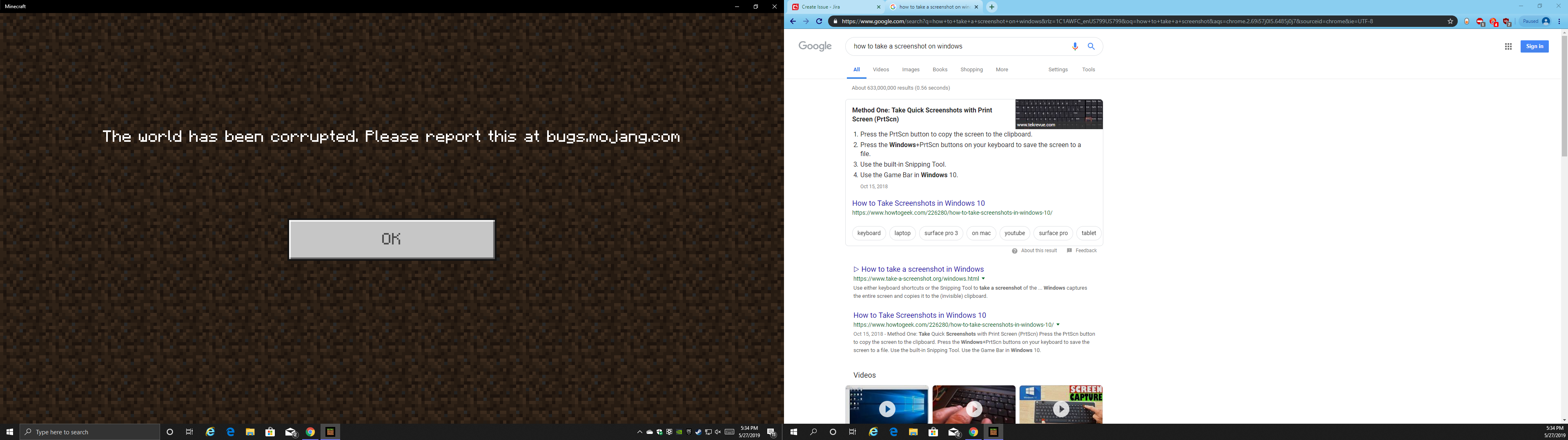 i was playing on one of my worlds just fine and then left the game for the night when i tried to log back in i got a notice that i had low storage even though i have over 300 GB of storage on my PC free i closed minecraft and restarted it i have turned off my computer and turned it on and nothing was working now i am getting a notice that my world has been corrupted even thought i log in and am fine for about 5 seconds i dont know what to do and have had the game for only a few daysÂ