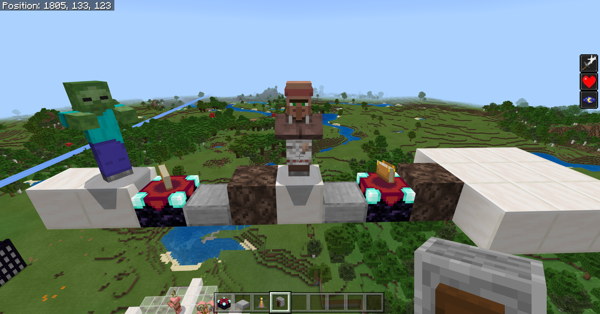 2. spawn a zombie on one end, and a villager a couple blocks away.