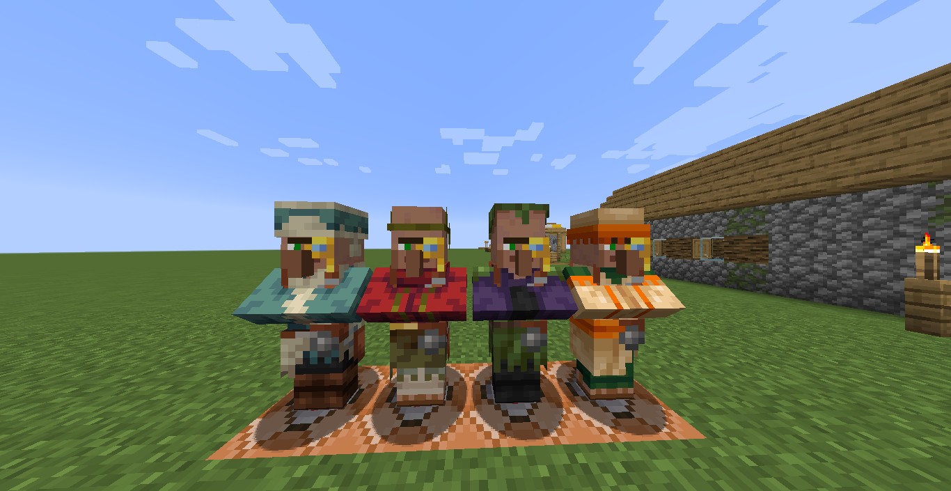 Note: Cartographers and weaponsmiths from 4 biomes are missing their head layers, while the librarians have the desert head layer visible.