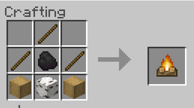The campfire crafting recipe requires three logs. Regular logs, stripped logs, as well as regular and stripped bark (AKA "wood") all work fine, but only certain combinations thereof. For example, oak and birch logs can be mixed, but stripped oak and birch logs cannot.