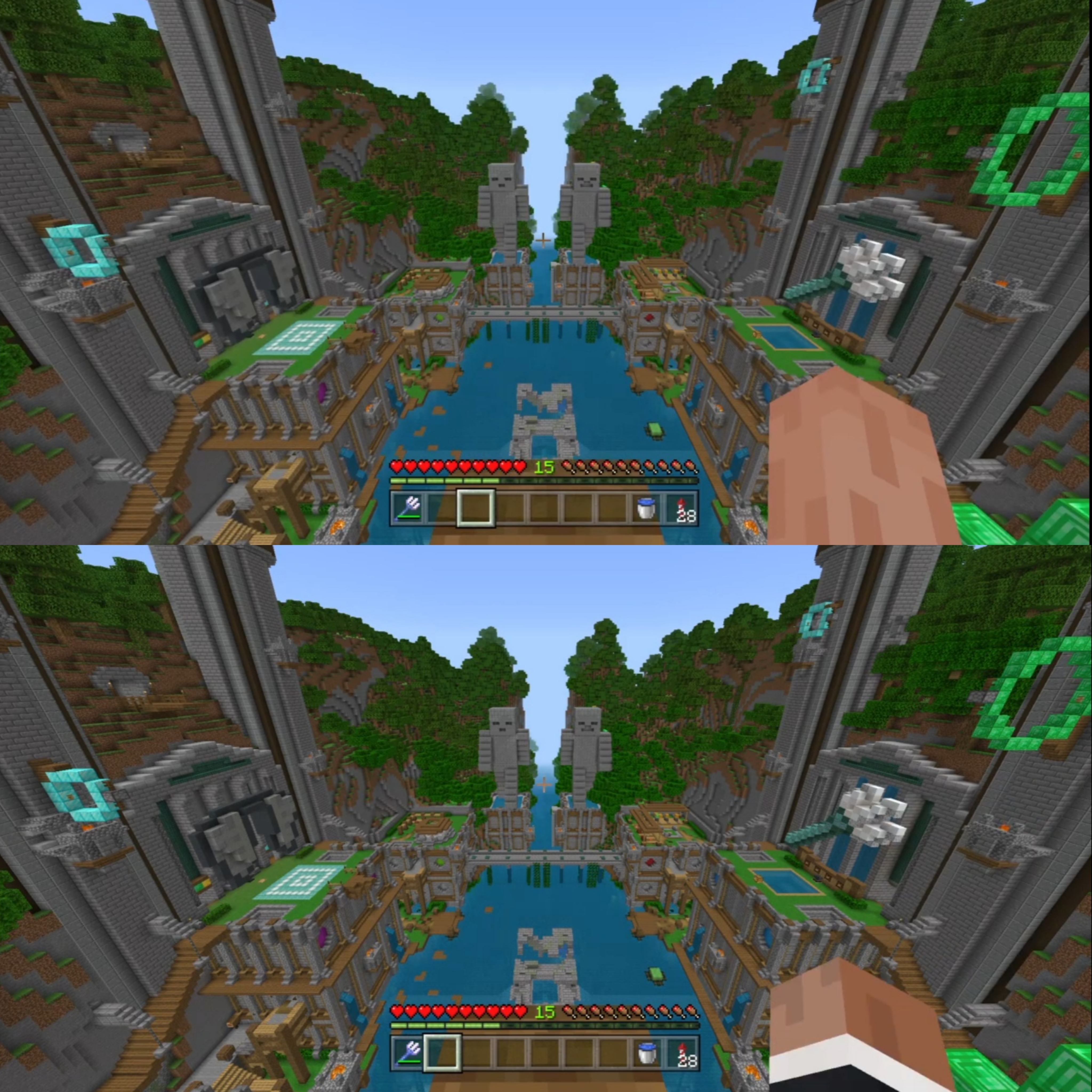 Also, could a comparison be shown between Java and Bedrock, using the same standard Steve skin and the same FOV setting also?