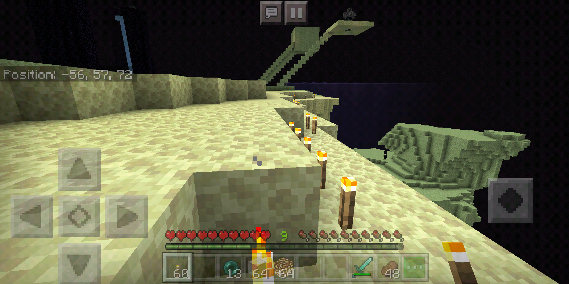 Picture: Torches show how far away the progression has been on the landing spot on the return trip from the outer end islands. The end gateway can be seen just off the main island in the distance. (Screenshot_2020-02-01-17-34-05.png)