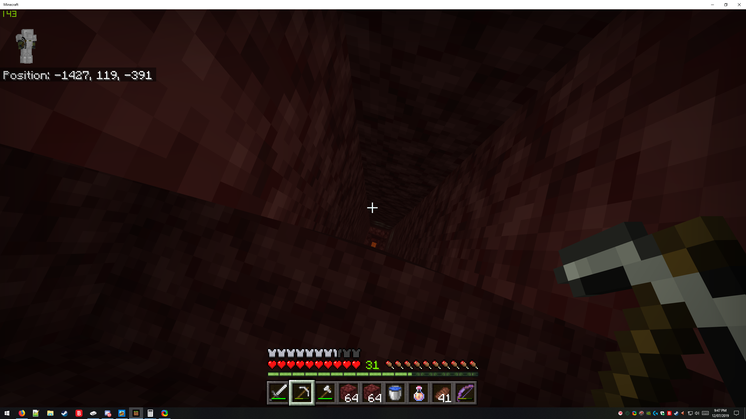 Having almost died to some magma cubes and pigmen, I was making my way back to my nether portal when I saw some pigmen through a 1 block tall gap into a cave I hadn't discovered yet.