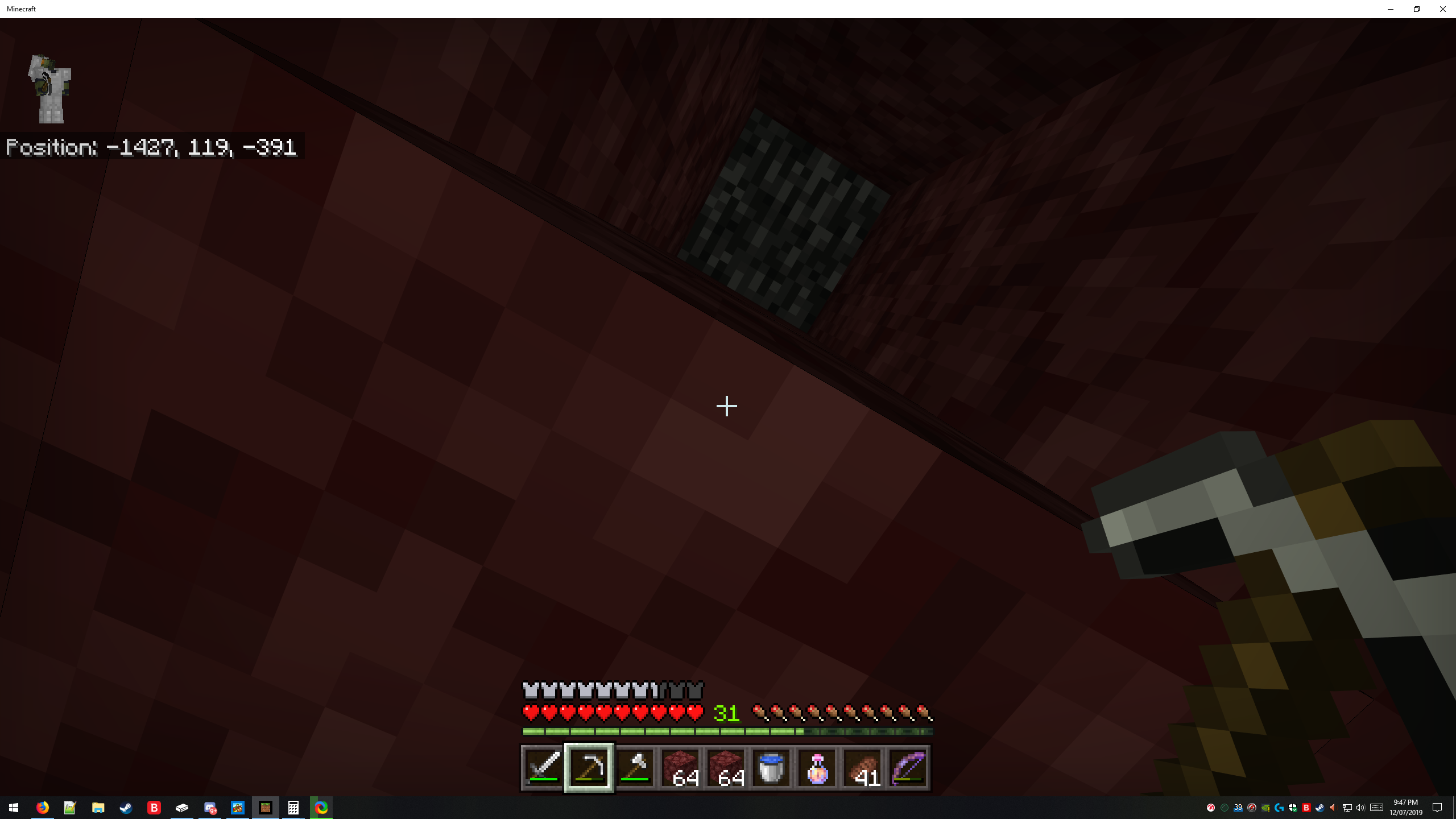 I lost many things, including my loyalty trident, enchanted diamond sword, other tools, and of course the 27 levels I had gathered through mining stacks of quartz.