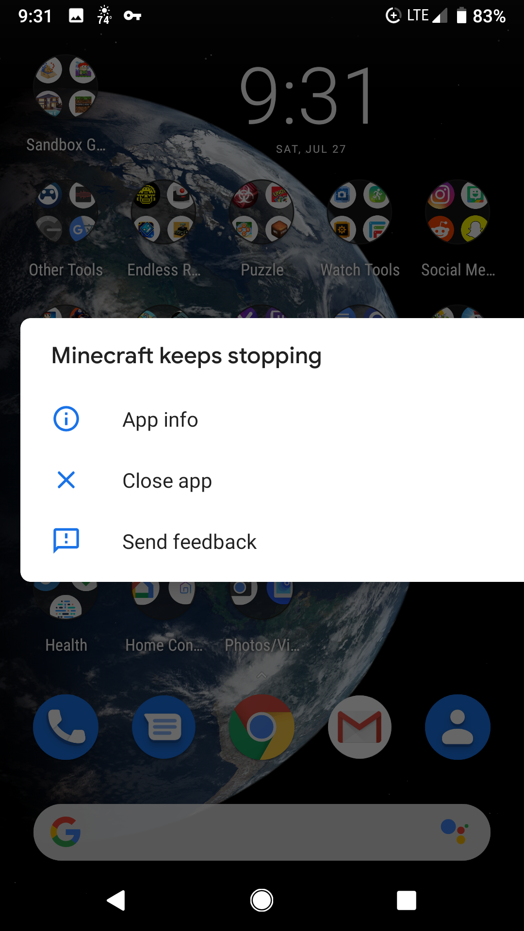 1. Open Minecraft on a Android 9 Google Pixel 2