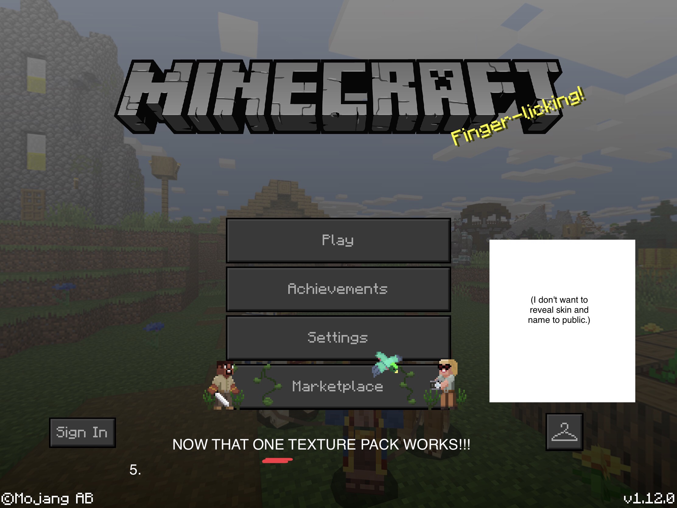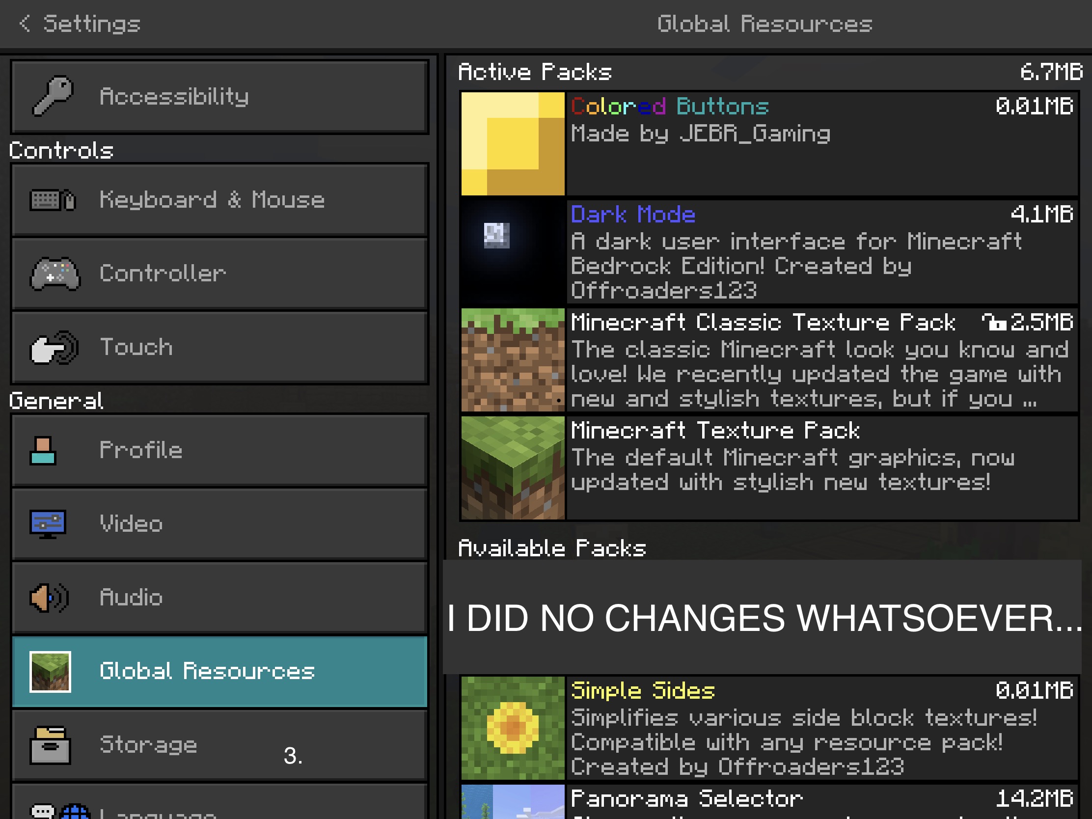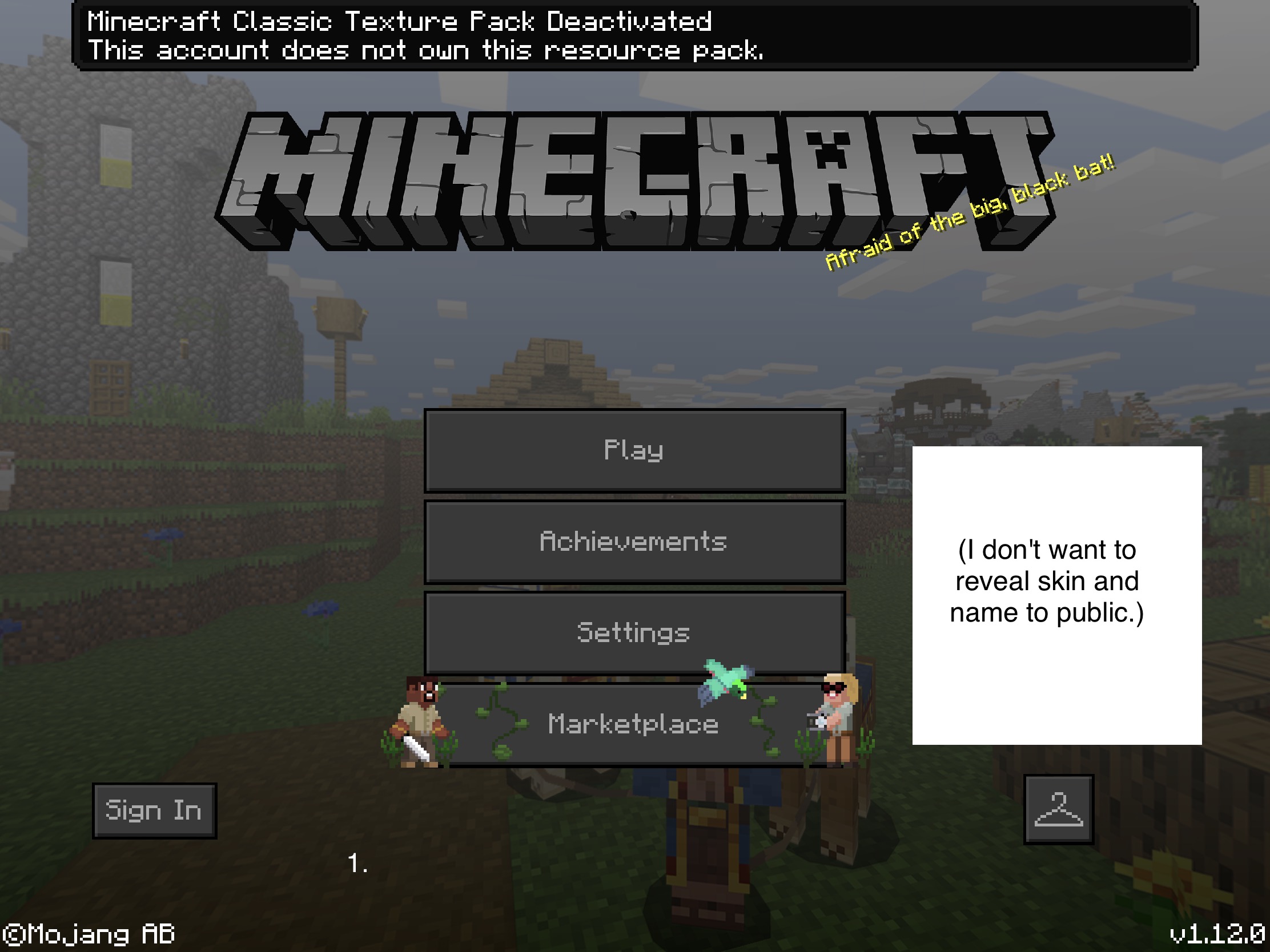 Well, if you download the classic/old texture pack from the marketplace, and if you apply it and restart the app (becuase I'm using iOS) it says "Minecraft Classic Texture Pack Disabled. This account doesn't own this texture pack"Β FOR A BRIEF SECOND. Then,Β that texture pack-- Β ONLY THAT TEXTURE PACK DOESN'T WORK WHEN I HOP INTO A WORLD. (until I go to Settings, then Global Resources, then exit Settings.Β To be honest, I don't have an minecraft account, so maybe that has to deal with it? Please fix, thanks.