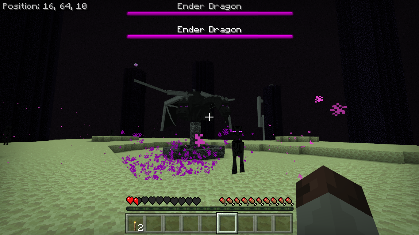 Only two? Hah! I can't even count how many there are in my world! I got a screenshot of it and they keep crashing my game in a matter of a few minutes after i enter the End. This screenshot shows 3 health bars, but I counted about 6...