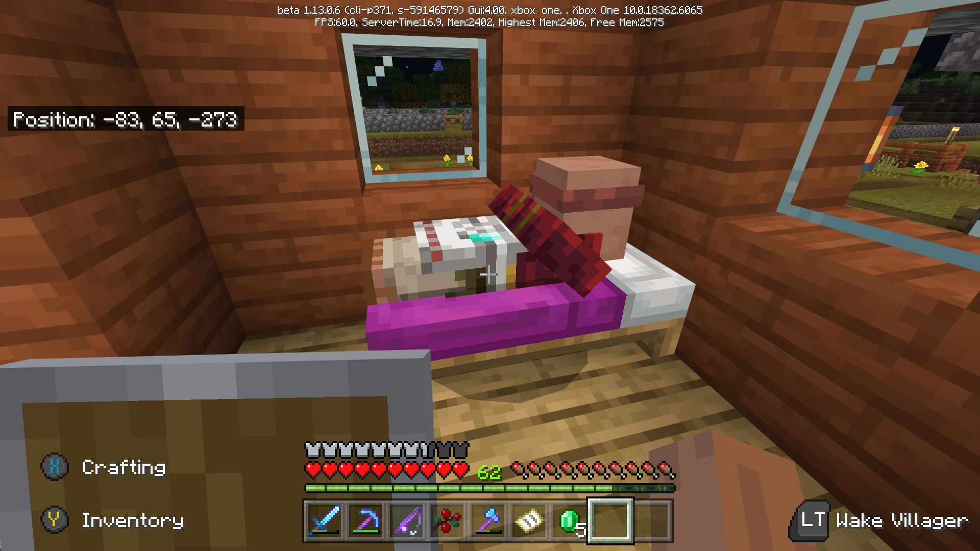 I had a ton of villagers in my world, and now almost all of them are gone, the place is secure, no zombies can get in at all. Villagers seem to sleep with their still up and same goes with the player as their head is twisted backwards.