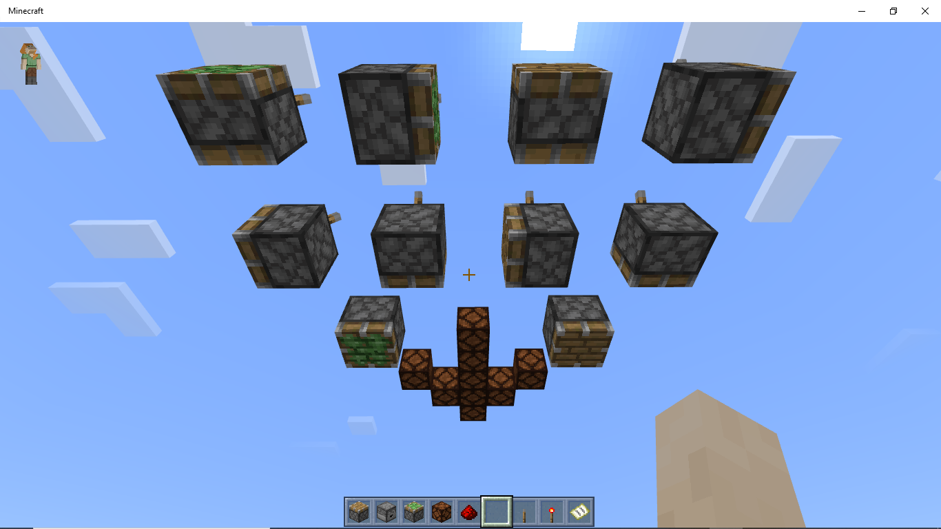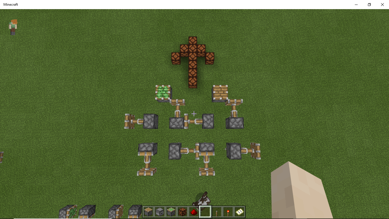 When pistons are placed in a position where the head is facing south, the head of the piston appears twice on the upper and lower faces of the block. On the upper face, it has double heads facing the same direction, on the lower face, it has one head in each direction. Does not show on the sides of the blocks or in other orientations. Occurs in both powered and unpowered states.