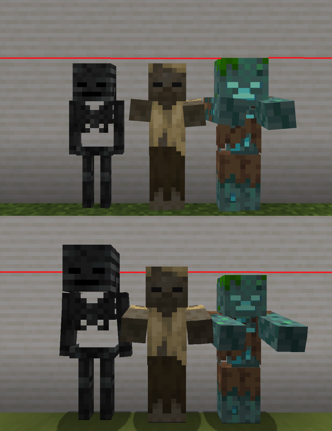 The drowned looks too tall, but that is most likely due to its bloated head (possibly a separate issue).