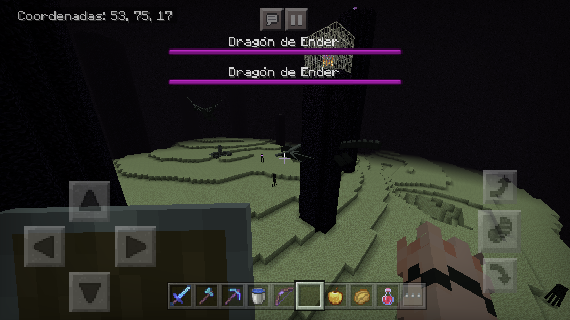 Busque una nueva stronghold ya que mi stronghold salió defectuoso (era solo un cuadrado de stronghold), luego al entrar al end encuentro 2 ender dragón que me arruinaron la partida y experiencia “tenían mucho pero mucho empuje, básicamente volé 1000 bloques” para salvar la partida tuve que ponerme en creativo y así perder mis logros y aburre una partida sin poder hacer los logros :’v