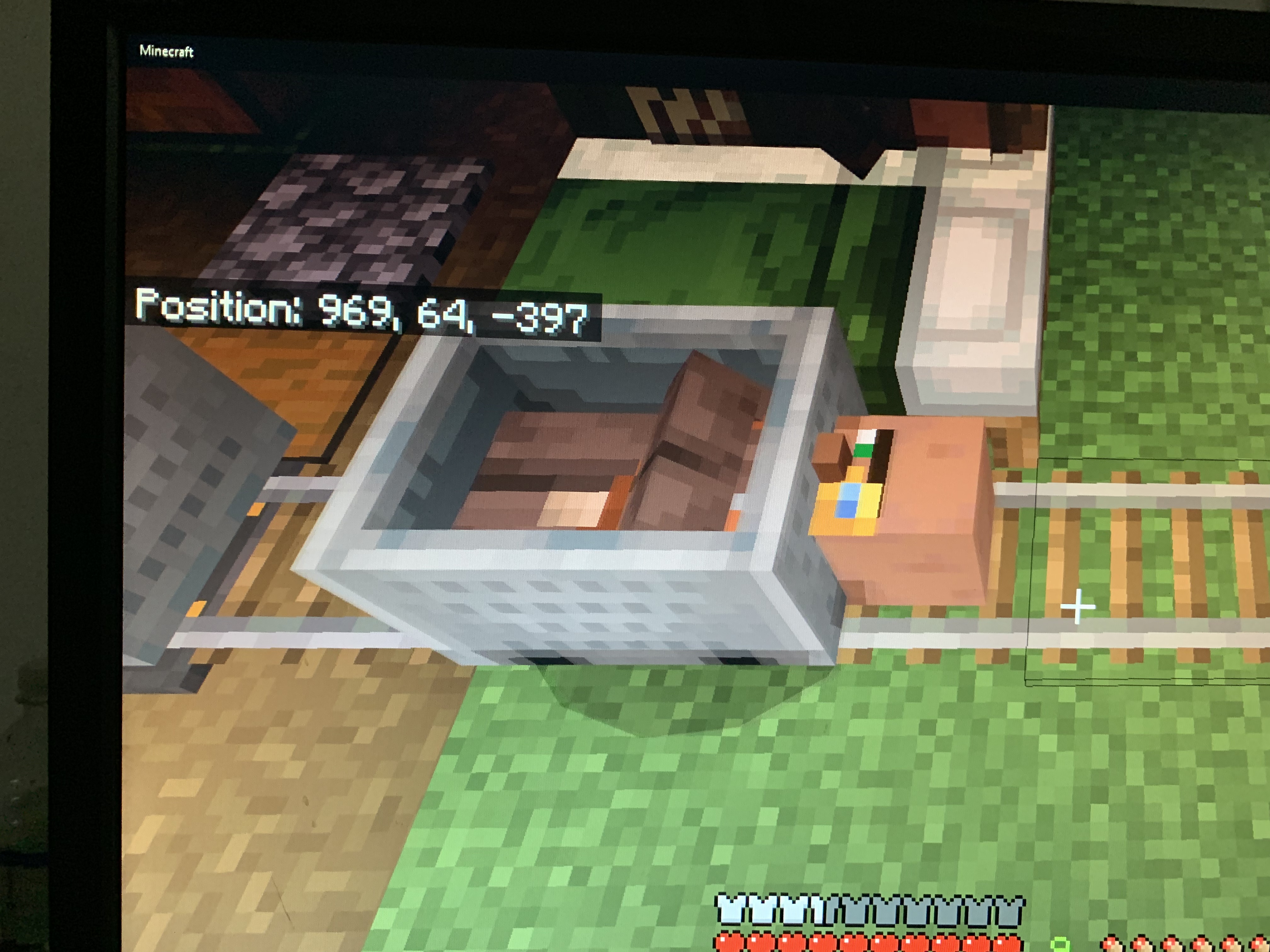 Villagers sleeping in a bed are sucked into a minecart that comes beside them, where they remain lying down.