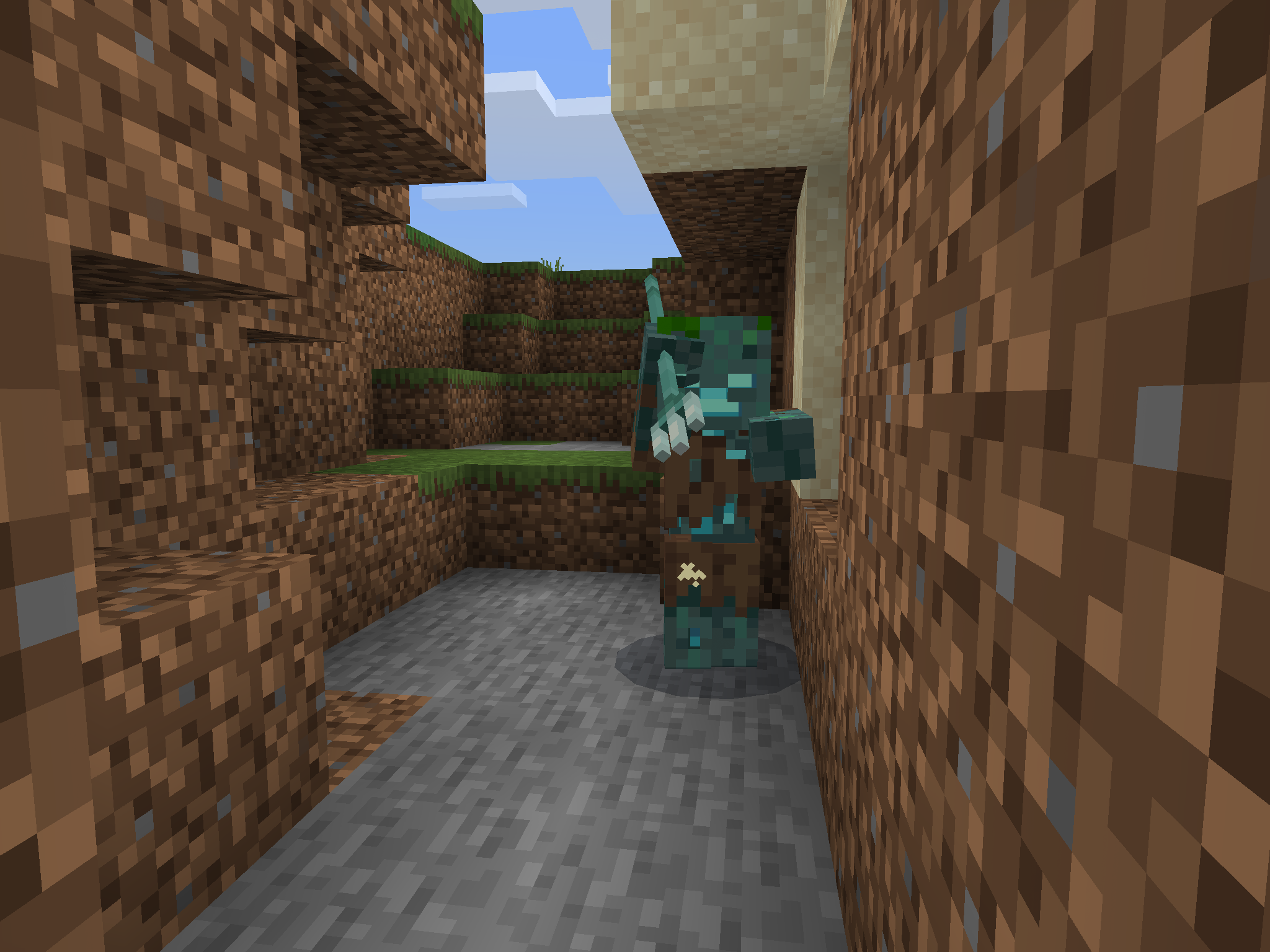 A Drowned followed me into a cave during day, and it was holding a trident.