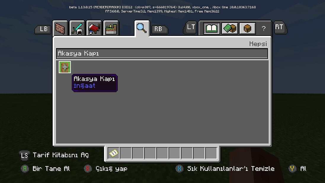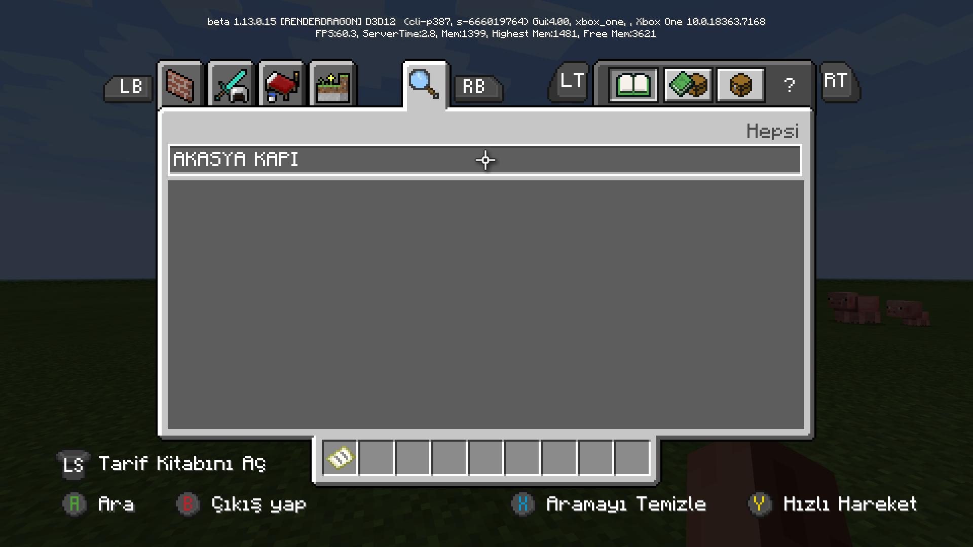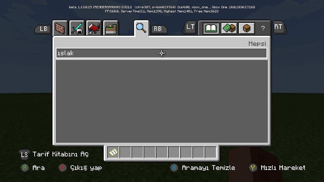 In the item search menu on Gamemode Creative and If the language of the game is Turkish; Search does not work properly because of the letters in the Turkish alphabet iİ ıI difference.