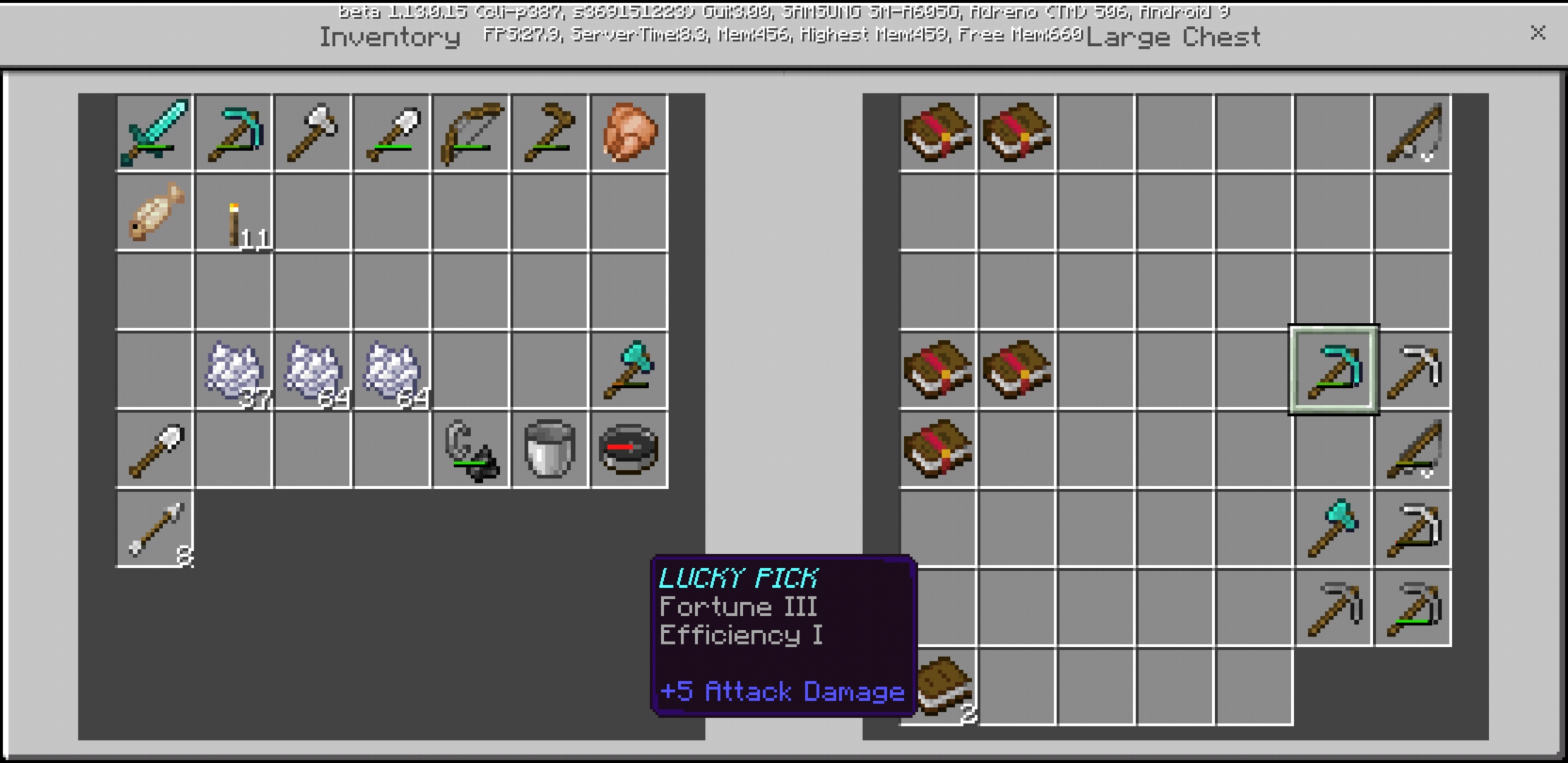 While I was playing I noticed all my enchanted items did not have the "enchanted" look in my inventory so I thought it was all gone because of a bug but then when I clicked on one of them it said it was enchanted I took a look in my chests with enchanted items and it was also the same (see attached screenshots). Whenever I drop the enchanted Item though, it still glows like it was enchanted it just loses the enchanted effect once its in my inventory or a chest.