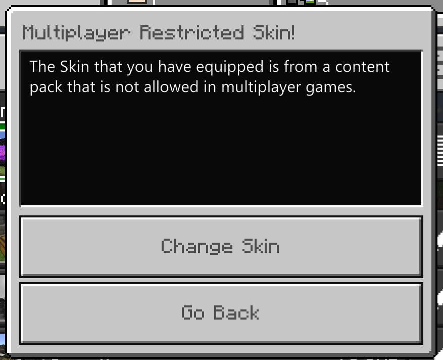 Whenever you launch Minecraft, it tells you you must change your skin, as it is from a content pack not available in multiplayer games. This, however, happens even when your skin is perfectly fine for multiplayer games.