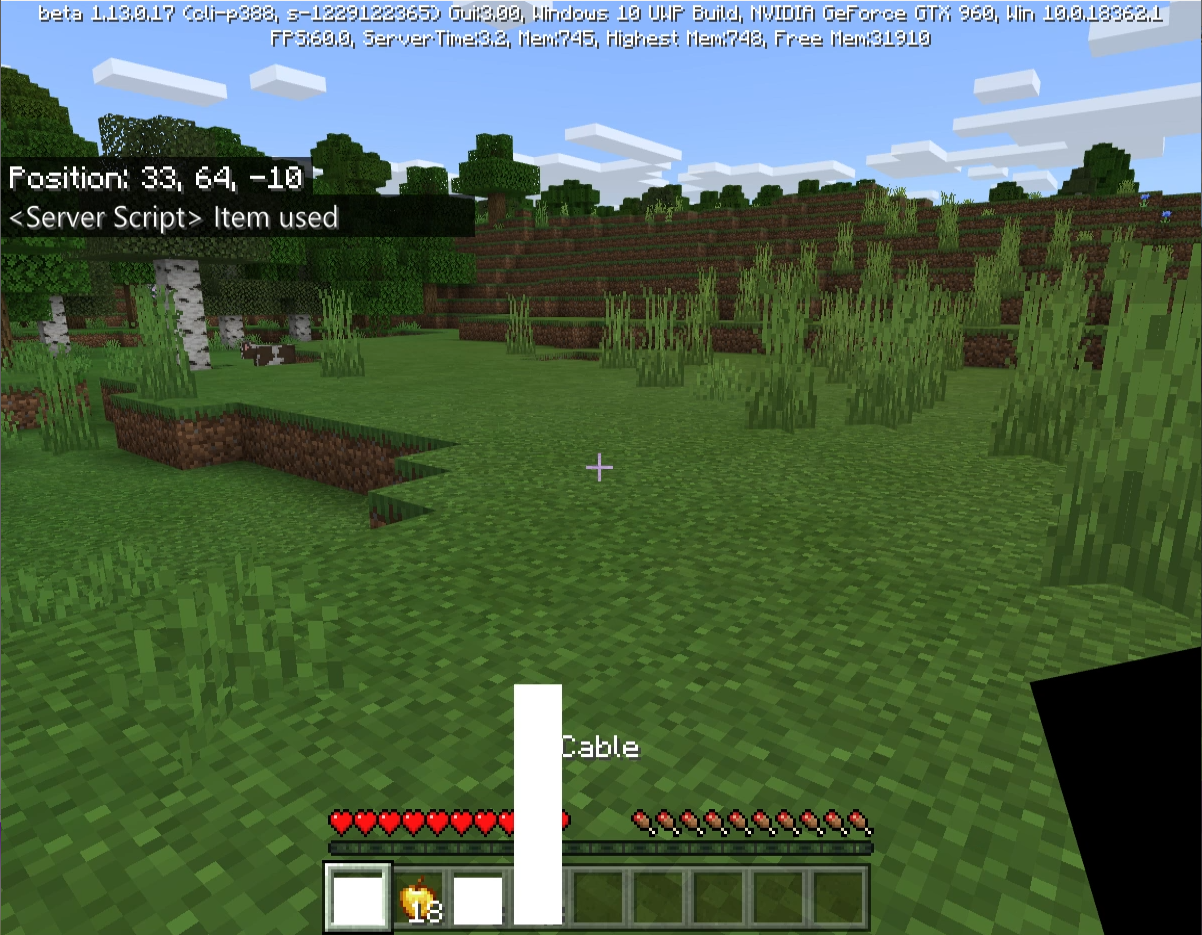 The chorus fruit cooldown indicator bar appears to have its maximum height set based on the default cooldown time rather than the time for the current cooldown. This can be seen by creating a custom item with the "chorusfruit" cooldown_type but a different cooldown time than the default (20).