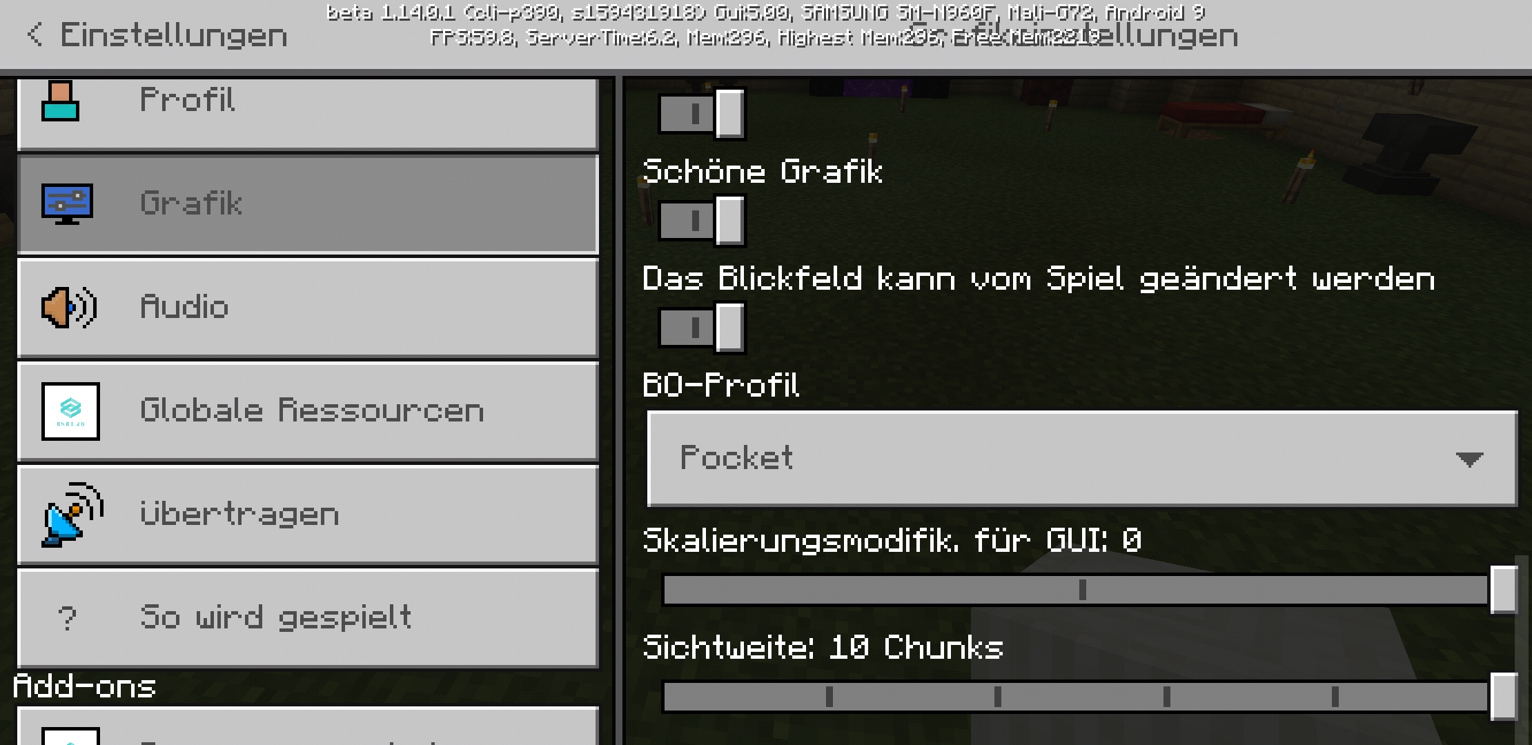 Bug:Render removal chunk bug. hello i have a very strange bug it is the renderdistanz chunks that i can only put on 10 chunks instead of 24 chunks. I am playing a Samsung Galaxy Note 9 SM-N960F / DS who can still confirm the error? Please fix the error.
